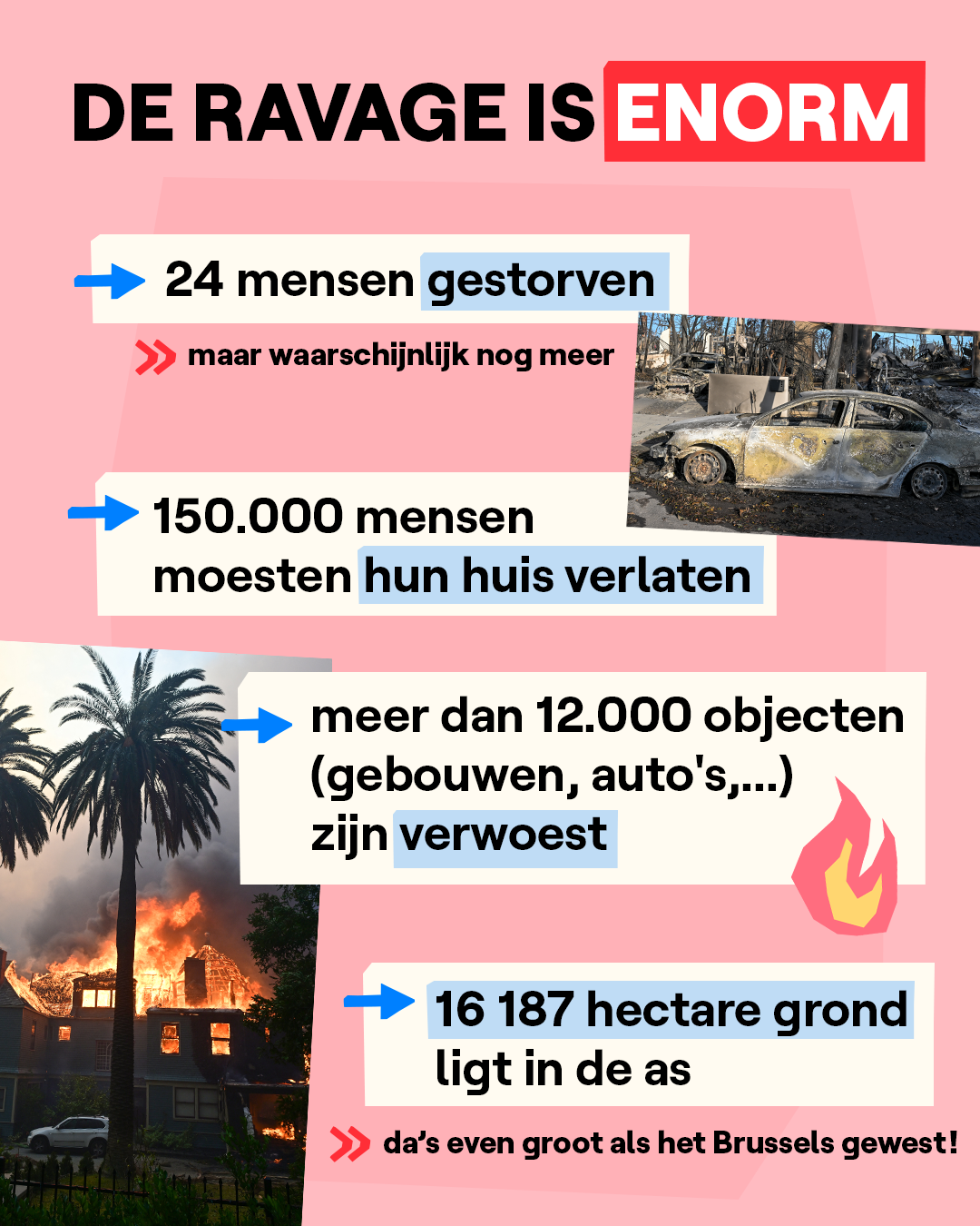 Gebied zo groot als Brussel verwoest: zware bosbranden in Los Angeles woeden verder