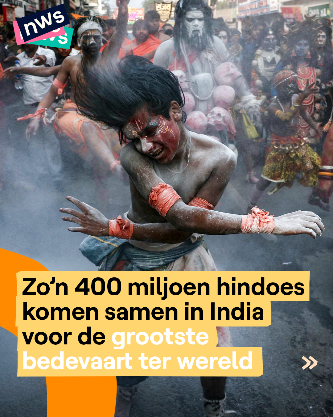 In het noorden van India is gisteren de grootste bedevaart ter wereld begonnen, de Kumbh Mela. Naar schatting doen zo'n 400 miljoen hindoes mee met het feest. Da's meer dan alle inwoners van de VS en Canada samen. Tijdens het feest gaan de hindoes naar een van de heilige rivieren om zich daarin te wassen. Op die manier wassen ze hun zonden weg. De Kumbh Mela vindt om de 3 jaar plaats, duurt 6 weken en er zijn in totaal 4 heilige locaties. Prayagraj, de plaats waar de bedevaart dit jaar doorgaat, wordt gezien als de belangrijkste omdat daar meerdere heilige rivieren samenkomen. Voor de bedevaart is een tijdelijke stad opgezet met zo'n 150.000 tenten.