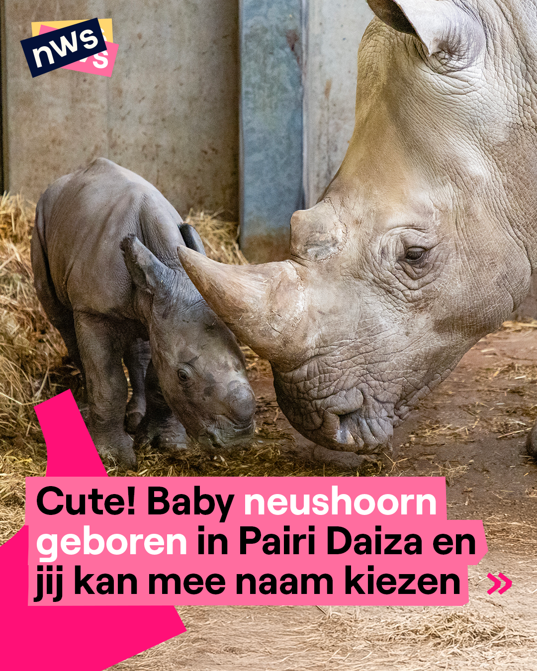 De eerste geboorte van het jaar in Pairi Daiza is een feit! Op 2 januari is Eléonore, een Zuidelijke Witte Neushoorn, bevallen van haar vierde kalfje. En da's goed nieuws, want hun soort is een bedreigde diersoort. Dat komt vooral door illegale jagers die hun hoorns willen verkopen. Er leven in totaal nog ongeveer 20.000 Zuidelijke Witte Neushoorns. Het nieuwe kalfje heeft nog geen naam. Maar binnenkort kan je daar via de Facebookpagina van de dierentuin mee over beslissen. Vanaf 8 februari kan je haar ook zelf gaan bezoeken. Swipe!