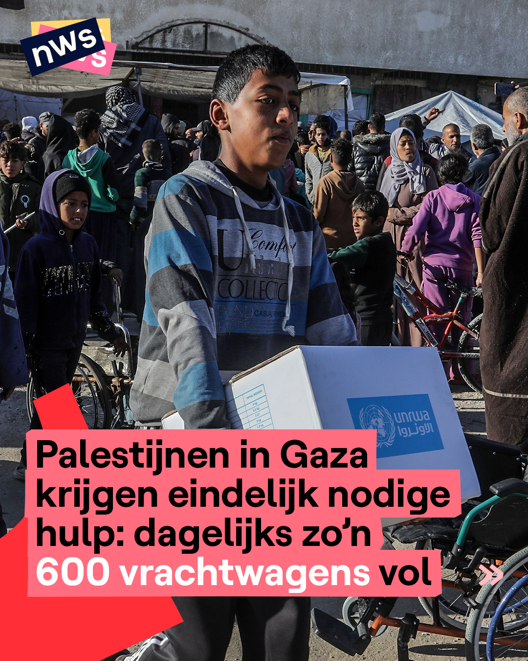Sinds de start van het staakt-het-vuren rijden er dagelijks zo'n 600 vrachtwagens met hulp binnen in Gaza. Gisteren en eergisteren waren dat in totaal zelfs zo'n 1530 vrachtwagens. Die reden met luid getoeter en vreugde naar binnen. Sommige chauffeurs stonden namelijk al zo'n maand te wachten om hulp te leveren. Die hulp bestaat uit zaken zoals bloem, rijst, babymelk, water en dekens. De helft van deze hulp gaat naar het noorden van Gaza omdat er daar hongersnood dreigt. Ook het tekort aan medische middelen in Gaza kan nu worden aangevuld. Zo'n 110.453 Palestijnen raakten namelijk gewond en elk ziekenhuis is deels of volledig verwoest door de aanvallen.