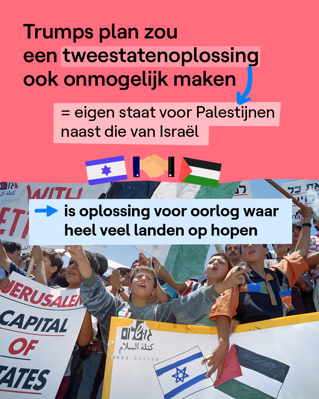 President Trump deelde zijn nieuwe plannen tijdens een bezoek van de Israëlische premier Benjamin Netanyahu. Die gaat volledig akkoord met de uitspraken van Trump. In tegenstelling tot andere landen en de Verenigde Naties (VN) die helemaal niet akkoord gaan. Zo vinden onder meer Frankrijk, Duitsland, Spanje en Saudi-Arabië dat de Palestijnen niet verplaatst mogen worden. De VN waarschuwt dan weer voor etnische zuivering.