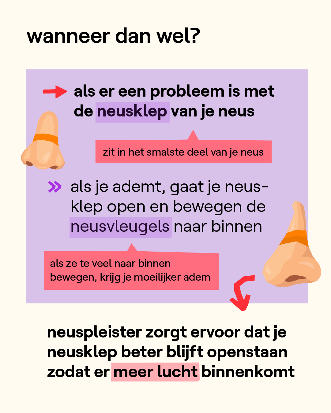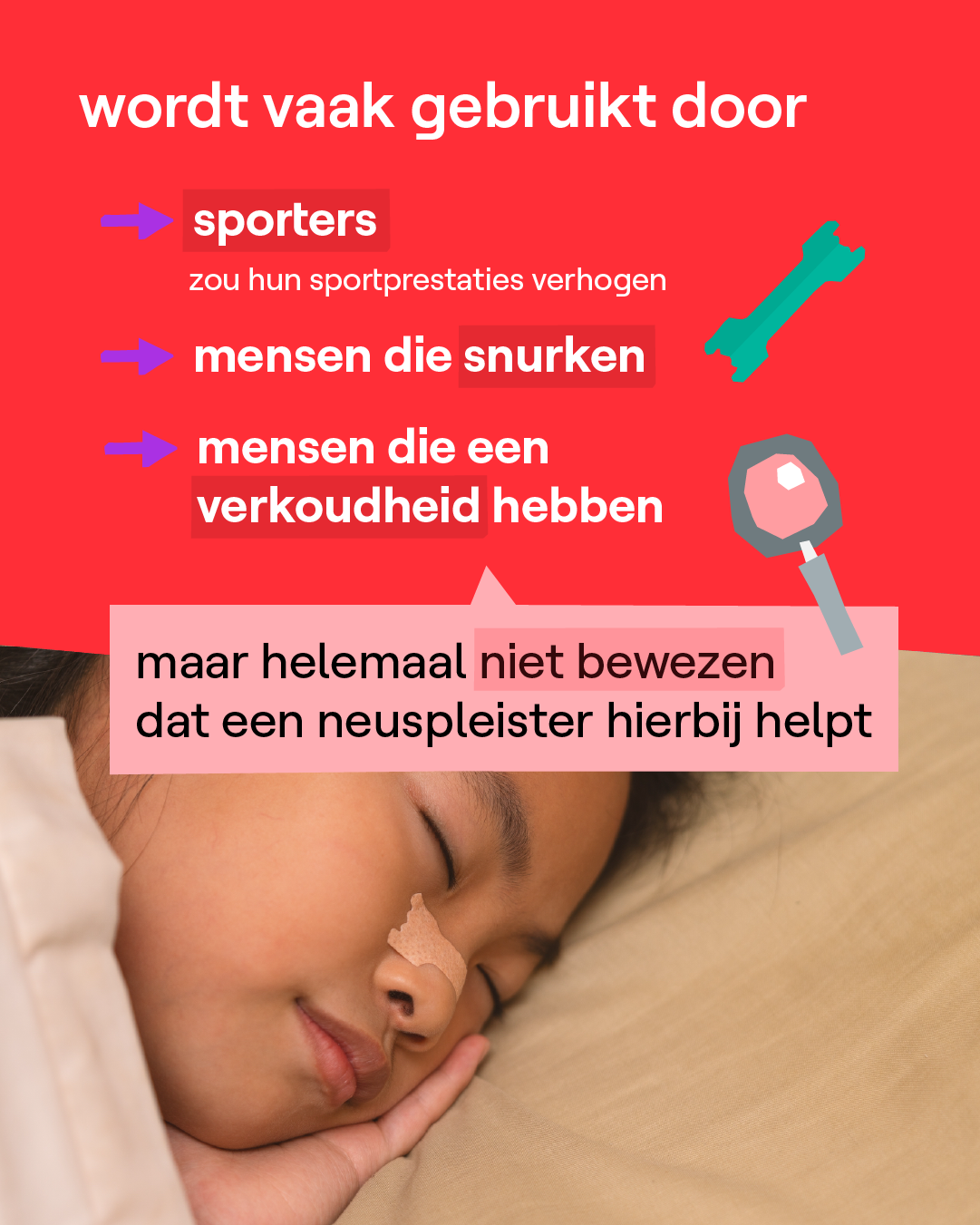 Zo'n 10 à 15 jaar geleden was de neuspleister ook al een grote hype bij voetballers. Toch heeft die neuspleister volgens experten weinig zin. Want van zodra je je hard gaat inspannen, begin je vanzelf via je mond te ademen. Bij een verkoudheid zwellen dan weer je slijmvliezen op. Daarop heeft de pleister ook geen impact. Snurken heeft dan weer te maken met je tong of lichaamsgewicht en dus ook niet met je neusklep.