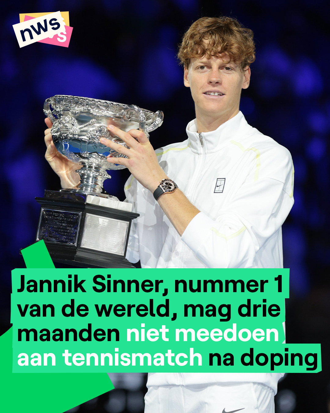 De Italiaanse tennisser Jannik Sinner mag een tijdje niet deelnemen aan wedstrijden. Hij is drie maanden geschorst, omdat hij vorig jaar twee keer positief testte op doping. Sinner had een verboden middel in zijn bloed dat ervoor zorgt dat je spieren sneller groeien. Volgens hem was de inname een ongeluk. Hij zegt dat het middel in zijn bloed terechtkwam nadat iemand van zijn medisch team een wonde op zijn vinger behandelde. Hij krijgt nu gelijk, maar is volgens het Wereldantidopingagentschap wel verantwoordelijk voor wat zijn team doet. Jannik Sinner is op dit moment de beste tennisser ter wereld. Vorige maand won hij voor de tweede keer op rij de Australian Open bij de mannen. Zijn straf eindigt net op tijd voor de Roland Garros in Parijs. Da's een van de belangrijkste tennistoernooien van het jaar.