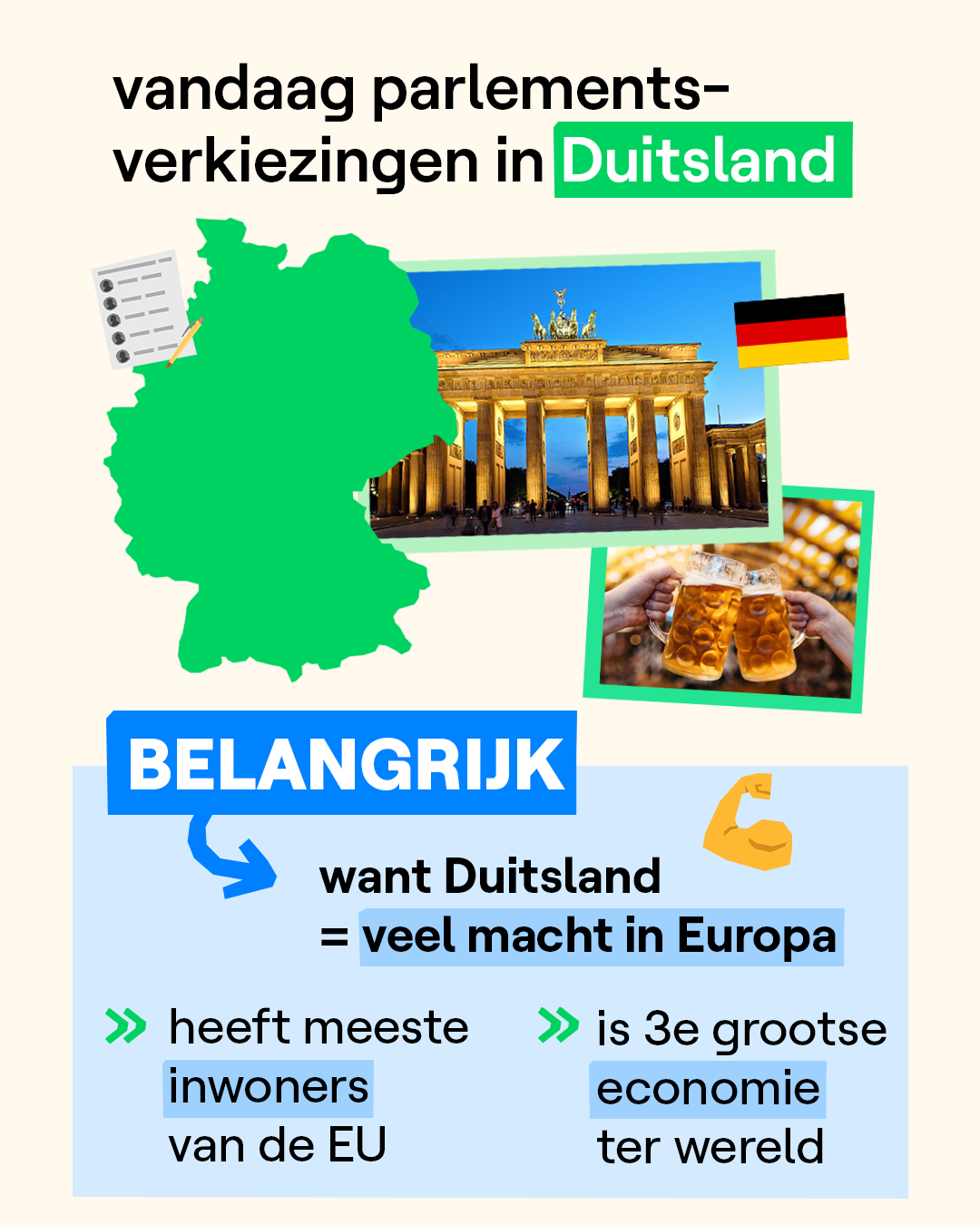 Election day in Duitsland! Zo’n 60 miljoen Duitsers trekken vandaag naar de stembus. De eerste resultaten worden vanaf 18 uur verwacht.