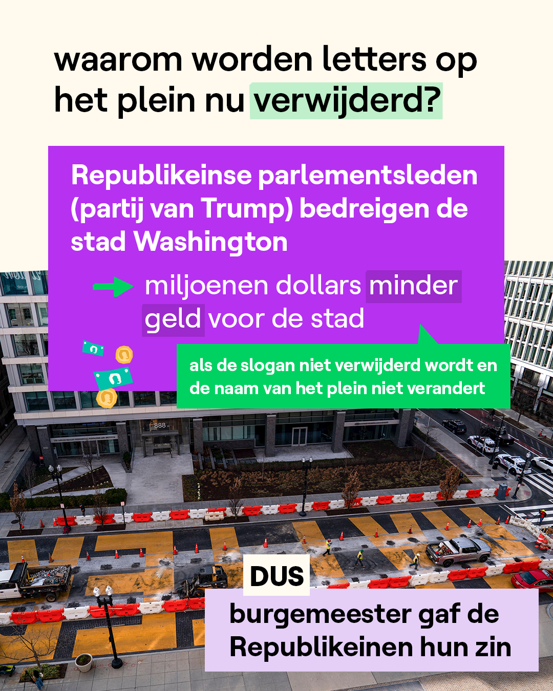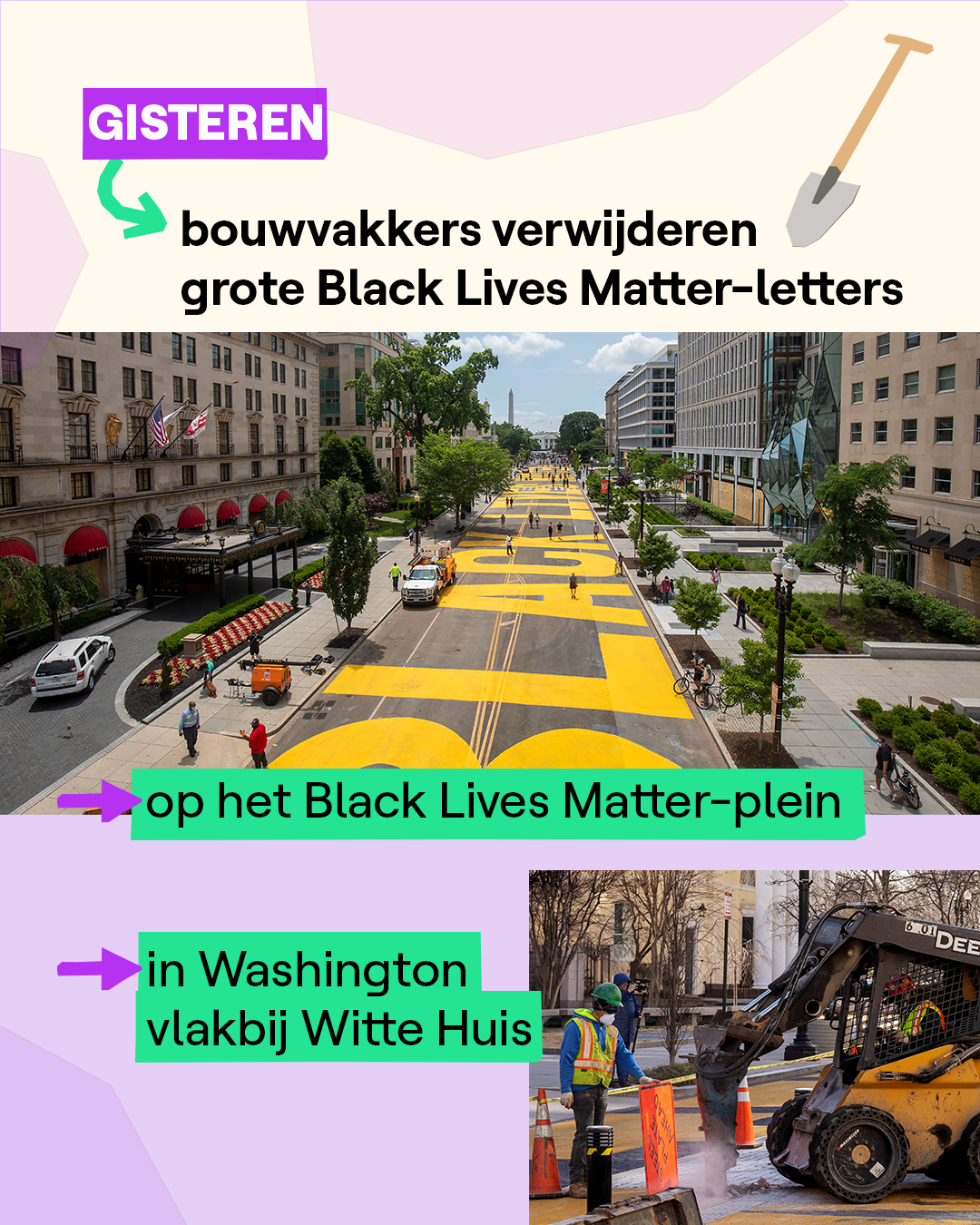 Bouwvakkers verwijderen Black Lives Matter-letters op plein in Washington. Waarom?