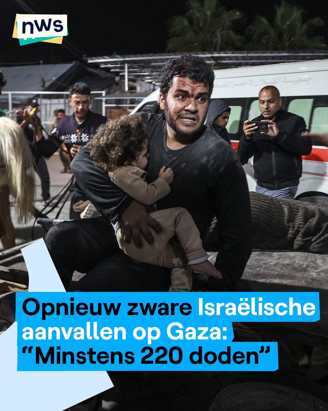 Het Israëlische leger heeft opnieuw luchtaanvallen uitgevoerd op de Gazastrook. Er zouden zeker 220 doden zijn, onder wie veel kinderen. Het gaat om de zwaarste aanvallen sinds het begin van de gevechtspauze, bijna twee maanden geleden. De Israëlische regering zegt dat ze met de aanvallen Hamas onder druk wil zetten om de Israëlische gijzelaars die nog worden vastgehouden, vrij te laten. De VS zegt dat Israël hen gisteren al op de hoogte had gebracht over de bombardementen. "Het lijkt erop dat Gaza weer in oorlogsmodus is", zegt VRT NWS-journalist Inge Vrancken.