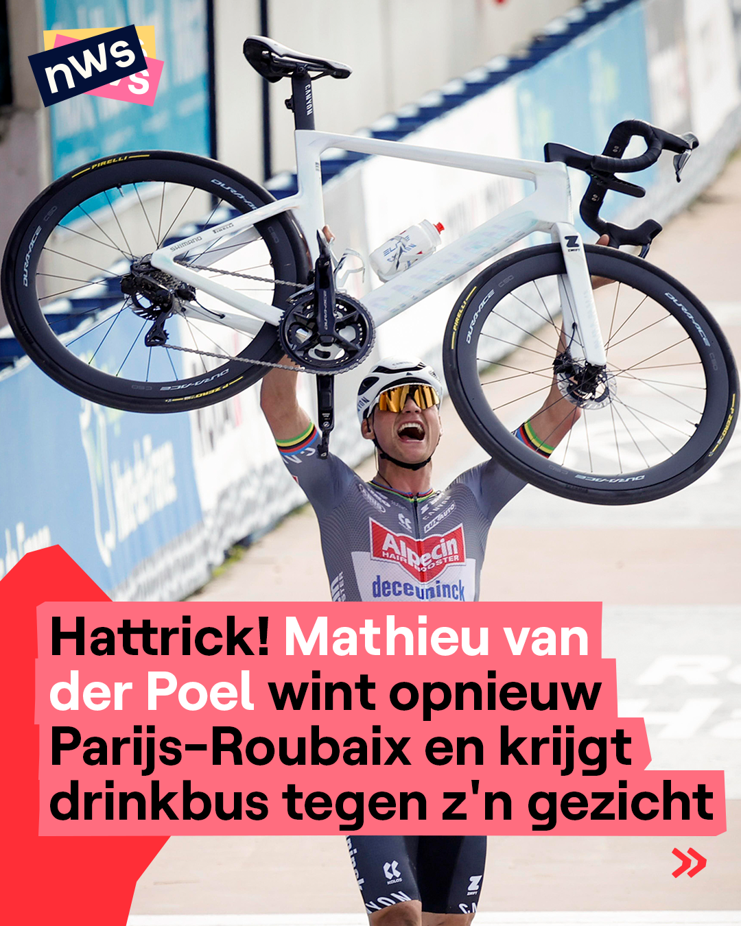 Mathieu van der Poel heeft vandaag Parijs-Roubaix gewonnen. En dat voor de derde keer op rij! Parijs-Roubaix is een van de 5 grote koersen van het wielerseizoen en wordt ook “Hel van het Noorden” genoemd door de vele kasseien. Opvallend: tijdens de koers gooide een toeschouwer een drinkbus in het gezicht van de Nederlander. “Een volle bidon is levensgevaarlijk. Deze mensen moeten weg uit de koers”, klinkt het bij de presentatoren. Gisteren won de Franse Pauline Ferrand-Prévot Parijs-Roubaix bij de vrouwen.