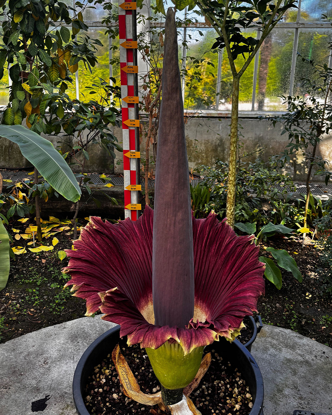 'Penisbloem' in bloei in Plantentuin Meise: 158 cm hoog en geur van rottend vlees