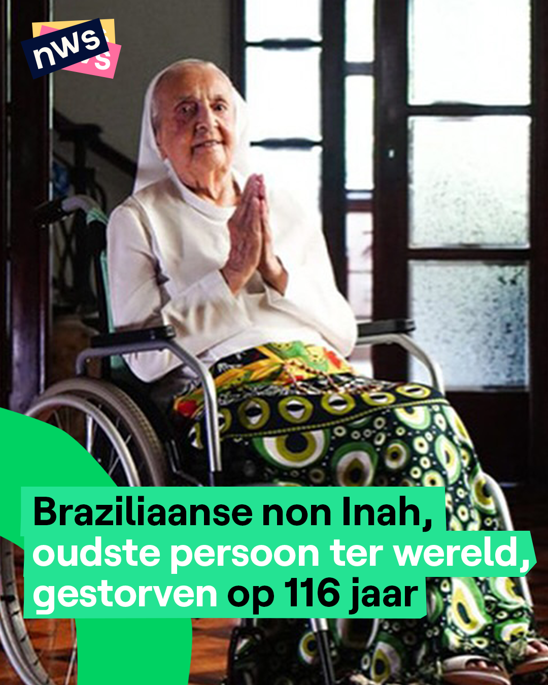 In Brazilië (Zuid-Amerika) is gisteren de oudste persoon ter wereld gestorven. Inah Canabarro Lucas werd geboren in 1908, ze was non en werd 116 jaar oud. Ze was sinds januari 2025 de oudste persoon ter wereld. Inah is gestorven in de religieuze gemeenschap waar ze verbleef. De titel van oudste persoon ter wereld gaat nu naar de 115-jarige Ethel uit het Verenigd Koninkrijk. Het record van oudste persoon ooit is voor de Franse Jeanne Calment. Ze werd 122 jaar en 164 dagen.
