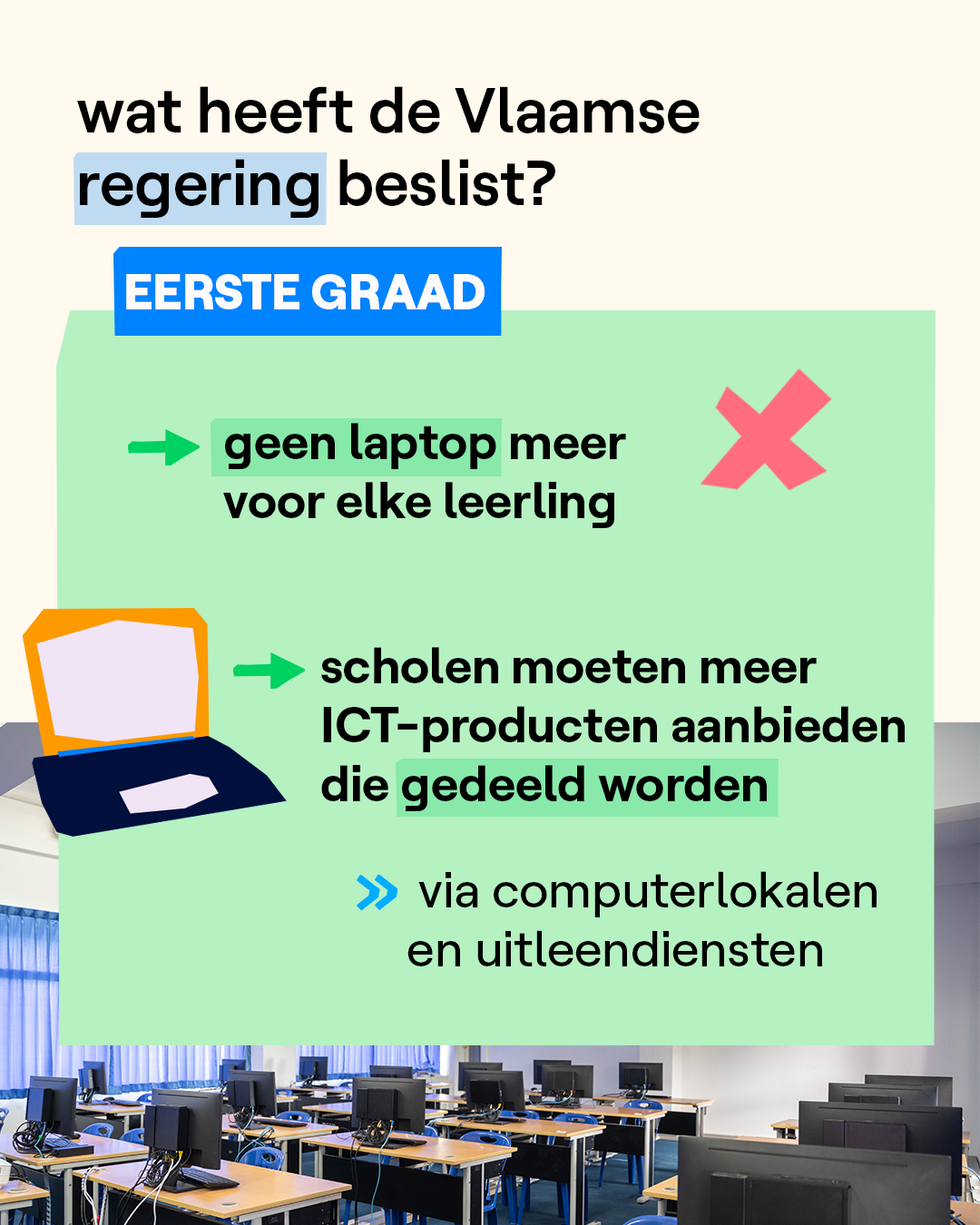 Vlaams minister van Onderwijs Zuhal Demir heeft eerder al gezegd dat ze fan is van meer pen en papier in de klas. Zo zouden leerlingen beter presteren. Ze belooft wel dat elke leerling toegang zal hebben tot een laptop, ook buiten de lesuren door bv. eentje te lenen van school.