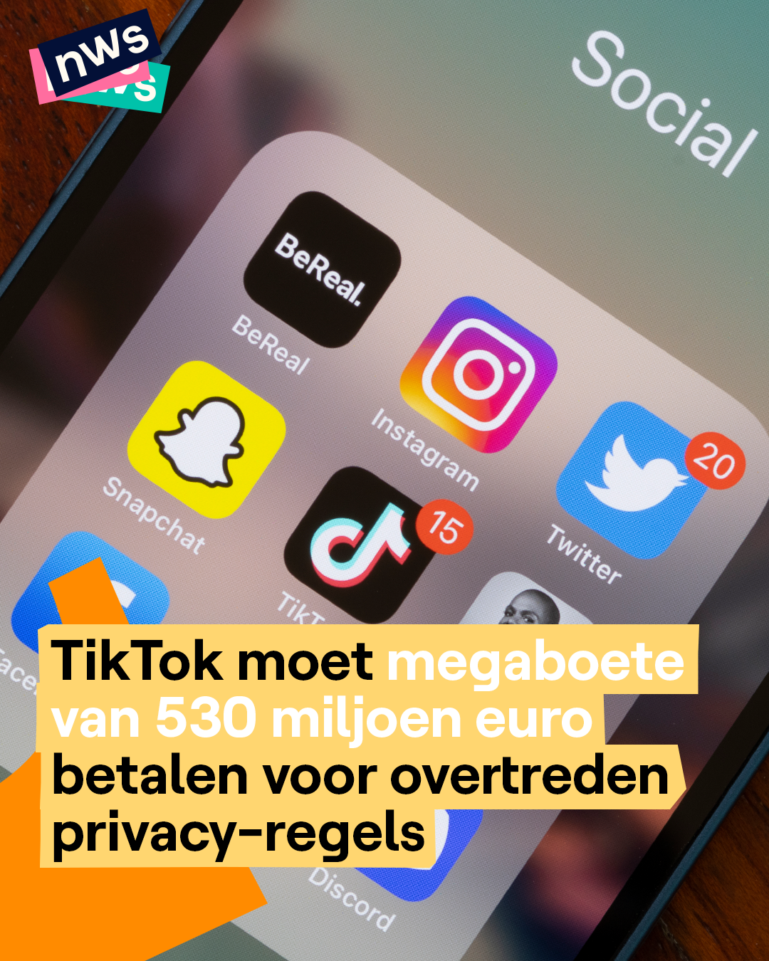 TikTok krijgt een boete van 530 miljoen euro omdat het de Europese privacy-regels heeft ovetreden. Het social mediabedrijf heeft gegevens van Europese gebruikers naar China gestuurd om ze daar op te slaan. Maar dat mag eigenlijk niet, want TikTok kan niet garanderen dat je gegevens in China even goed beveiligd zijn als in de Europese Unie. In China is er een wet die de overheid toegang kan gegeven tot de data van bedrijven. Als je dan iets doet of zegt op TikTok dat de Chinese overheid niet leuk vindt, kan het zijn dat je later bv. problemen krijgt als je naar China op vakantie gaat. Maar TikTok zegt dat het nooit gegevens aan de Chinese overheid heeft bezorgd en gaat in beroep tegen de beslissing.