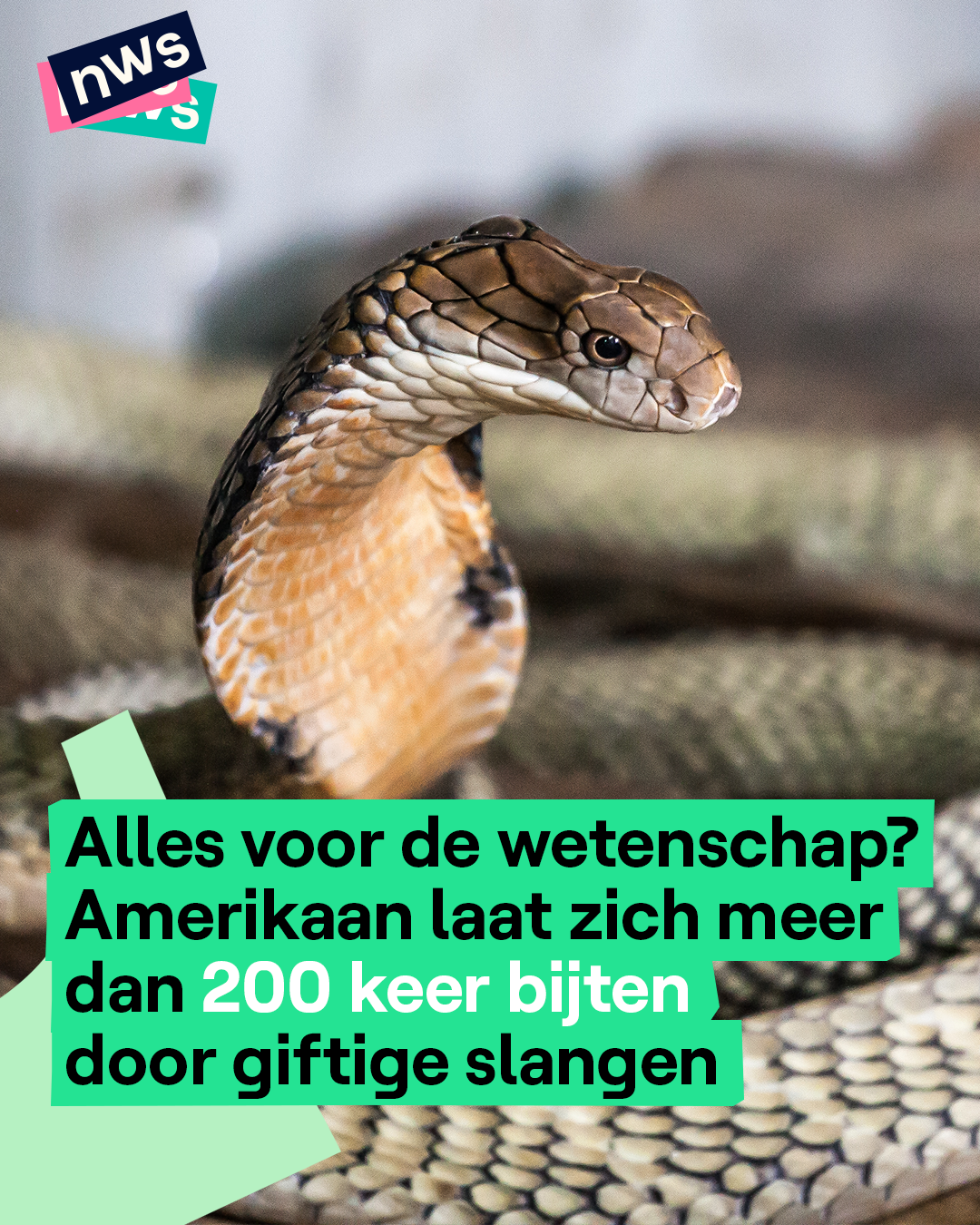 Don't try this at home! Een Amerikaanse man heeft zich zo vaak laten bijten door slangen, dat hij nu tegen slangengif kan. De man begon er 18 jaar geleden mee, omdat hij veel werkt met de dieren. Hij liet zich meer dan 200 keer bijten en hij spoot ook meer dan 700 keer slangengif in zijn lichaam. Dat gif kwam van enkele van de dodelijkste slangen ter wereld, zoals bv. cobra's. Wat de Amerikaan jarenlang deed, is supergevaarlijk. Door de slangenbeten en het gif is hij een stuk van zijn vinger kwijt en hij lag ook in coma. De man vroeg aan wetenschappers of ze onderzoek wilden doen naar zijn bloed en nu kan hij misschien wel duizenden levens redden. Experts proberen van zijn bloed een superkrachtig medicijn te maken. Elk jaar sterven zo'n 100.000 mensen door een giftige slangenbeet.