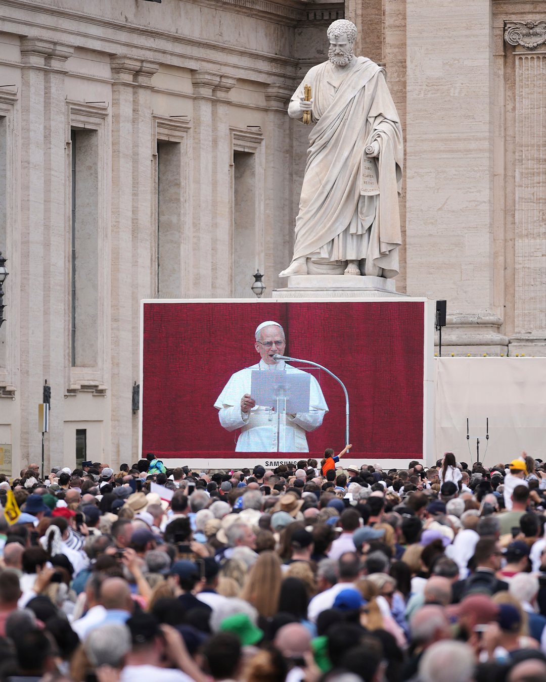 Paus Leo XIV heeft vandaag zijn allereerste zondagsgebed uitgesproken op het Sint-Pietersplein in Rome. In zijn toespraak riep hij onder meer op tot vrede in Oekraïne en in Gaza, maar hij sprak ook over andere conflicten in de wereld. Hij wenste ook alle mama's een fijne Moederdag en zong een stukje van het gebed. Het was de eerste keer dat de nieuwe paus weer op het balkon van de Sint-Pietersbasiliek te zien was sinds de bekendmaking vorige donderdag. Gelovigen en niet-gelovigen van over de hele wereld kwamen kijken naar zijn eerste viering. In totaal waren er zo'n 100.000 mensen op en rond het plein. Swipe!