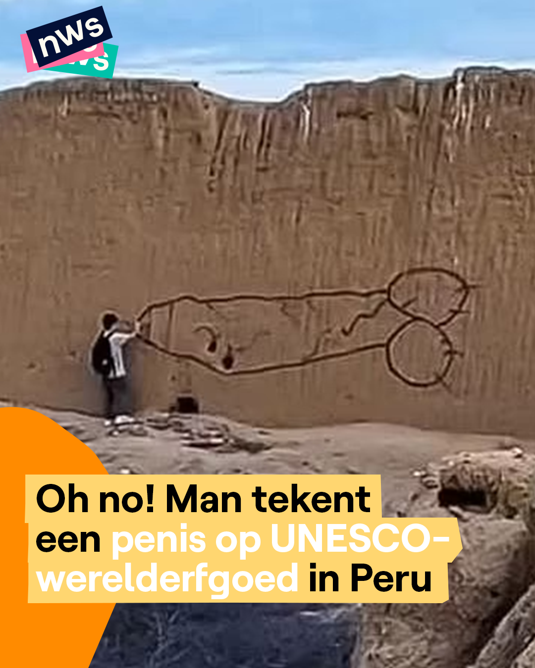 In Peru heeft een jonge man een graffiti-tekening van een penis gemaakt op de muren van Chan Chan. Da's een archeologische site in Peru, die op de UNESCO-werelderfgoedlijst staat. Da's een lijst met bijzondere plaatsen, feesten en tradities die wereldwijd beschermd moeten worden, zoals de Chinese Muur. Het is dus verboden om zo'n plek te beschadigen. De man werd door een bewakingscamera gefilmd en de beelden gingen al snel rond op sociale media. Wie de dader is, is nog niet bekend. Hij riskeert een gevangenisstraf van maximaal zes jaar. Een team van specialisten zijn ondertussen al gestart met het herstellen van de muur.