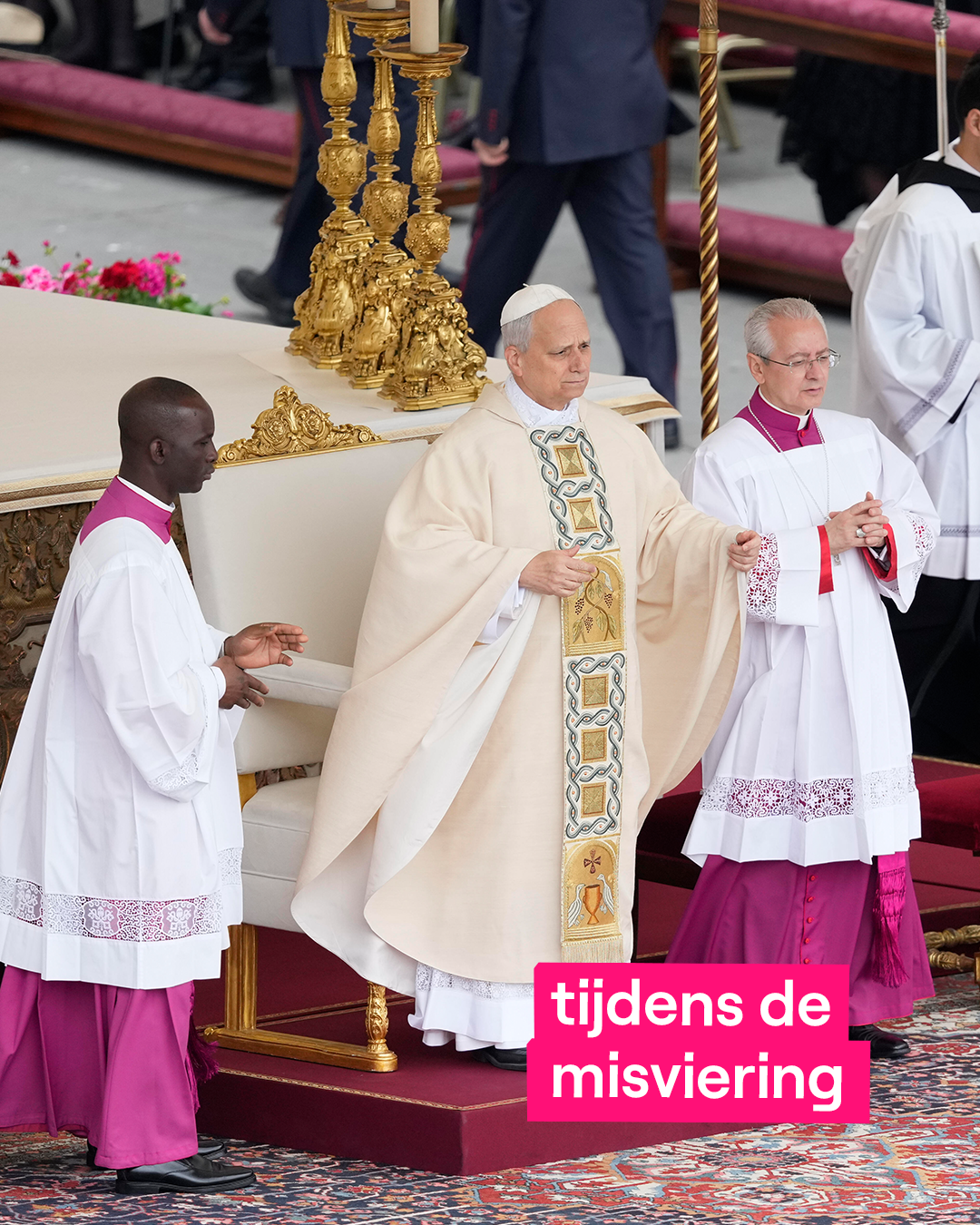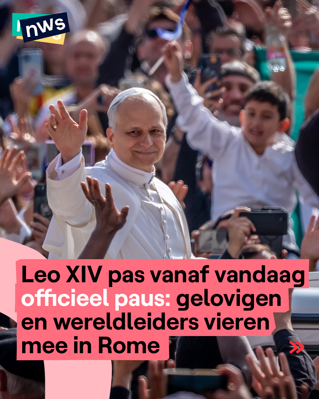 Vanaf vandaag mag de Amerikaan Robert Prevost zich écht paus Leo XIV noemen. Dat komt omdat nu pas de ‘inauguratie’ plaatsvindt. Da’s een plechtige ceremonie waarbij iemand officieel begint aan een belangrijke job. Bij de mis op het Sint-Pietersplein in Rome zijn heel wat staatshoofden en regeringsleiders aanwezig, zoals onze koning Filip en koningin Matilde, de Italiaanse eerste minister Meloni, de Oekraïense president Zelensky... Leo XIV krijgt vandaag ook twee belangrijke pauselijke symbolen: de witte, wolle pallium (een soort kraag van wol) en een pauselijke vissersring. Dat is traditie voor elke paus.