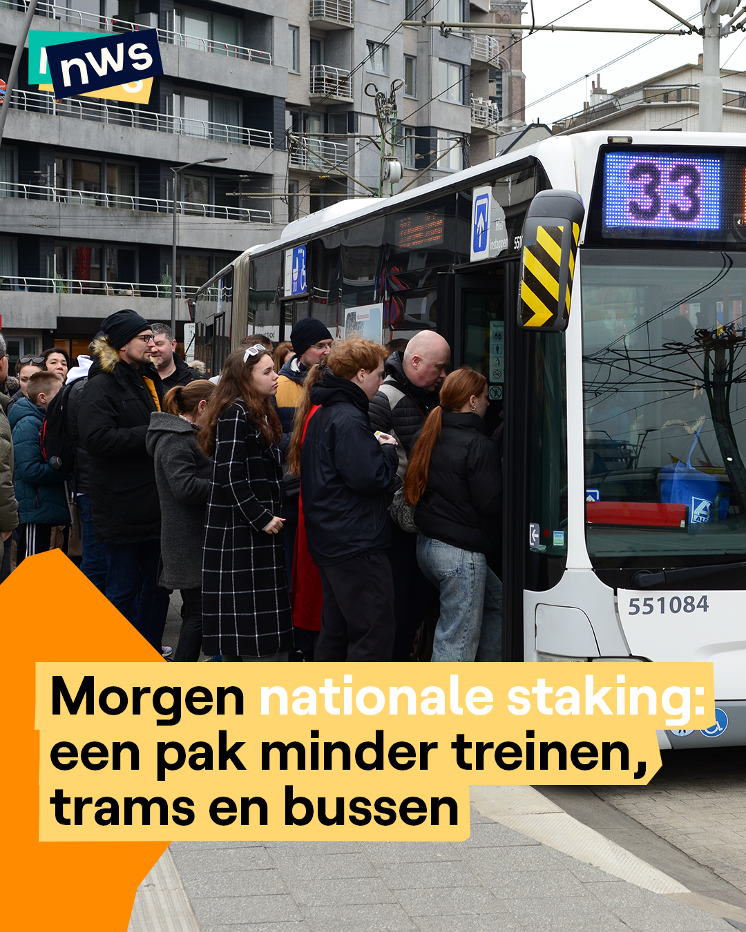 Wie morgen met de bus, tram of trein naar school moet, checkt best eerst even de app van De Lijn en NMBS. Want morgen is het nationale staking en daar doen de NMBS en De Lijn aan mee. Zo zullen morgen 2 op de 5 IC-treinen en 1 op de 2 L- en S-treinen niet rijden. De Lijn zegt dan weer dat zo'n 37% van alle bussen en trams niet zullen rijden. Ben je van Antwerpen of Gent? Let dan extra goed op want daar rijdt morgen meer dan de helft van de trams en bussen niet.