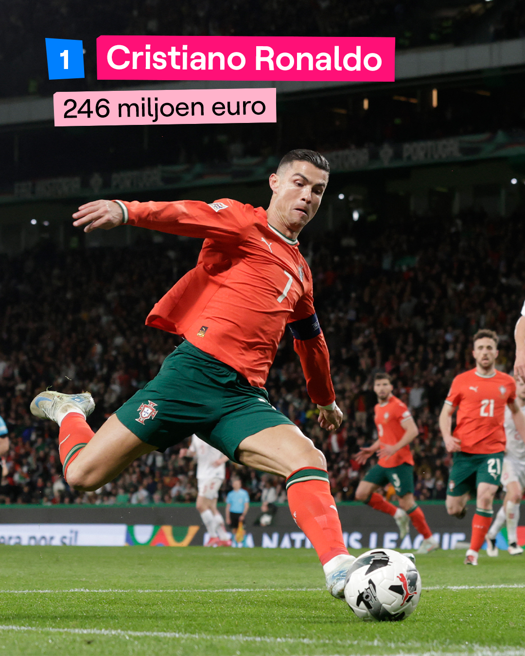 Het voorbije jaar verdiende Cristiano Ronaldo 246 miljoen euro. Daarmee is hij voor het derde jaar op rij de best betaalde sporter ter wereld. Dat heeft hij te danken aan zijn loon bij de Saudi-Arabische voetbalclub Al-Nassr maar ook aan zijn eigen zaken. Een opvallend record in de lijst is dat van Stephen Curry. Nog nooit verdiende een basketballer zoveel als hem. Ook in de top 10: LeBron James op de zesde plaats en Karim Benzema op de achtste plaats.
