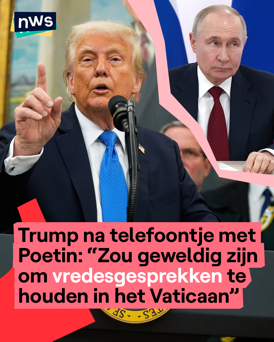 De Amerikaanse president Donald Trump en de Russische president Vladimir Poetin hebben gisteren 2 uur lang met elkaar gebeld. De leiders spraken met elkaar om de oorlog in Oekraïne te stoppen. Volgens Trump was het een "heel goed gesprek" en gaan Rusland en Oekraïne nu meteen praten over een einde van de oorlog. Toch zijn experten minder positief en denken zij niet dat er snel een wapenstilstand komt. Want de Russische president zegt eigenlijk niks nieuws na zijn babbel met Trump. Poetin blijft erbij dat er eerst afspraken moeten zijn over hoe de onderhandelingen gaan verlopen en wat er allemaal in het vredesakkoord komt. Dan pas kan er een staakt-het-vuren komen, zegt hij. Trump zegt nog dat hij het geweldig zou vinden om de gesprekken in het Vaticaan in Rome te organiseren. En daar is paus Leo XIV zeker niet tegen.
