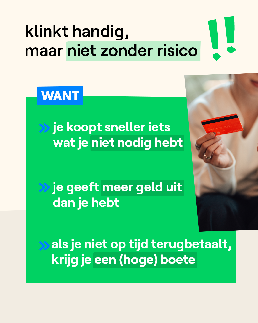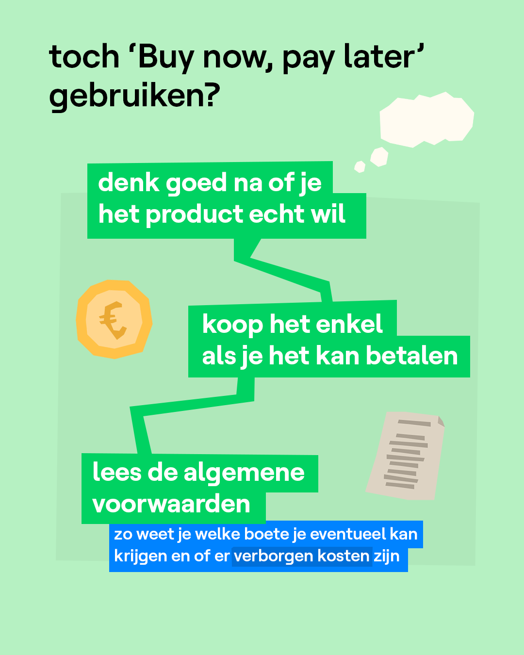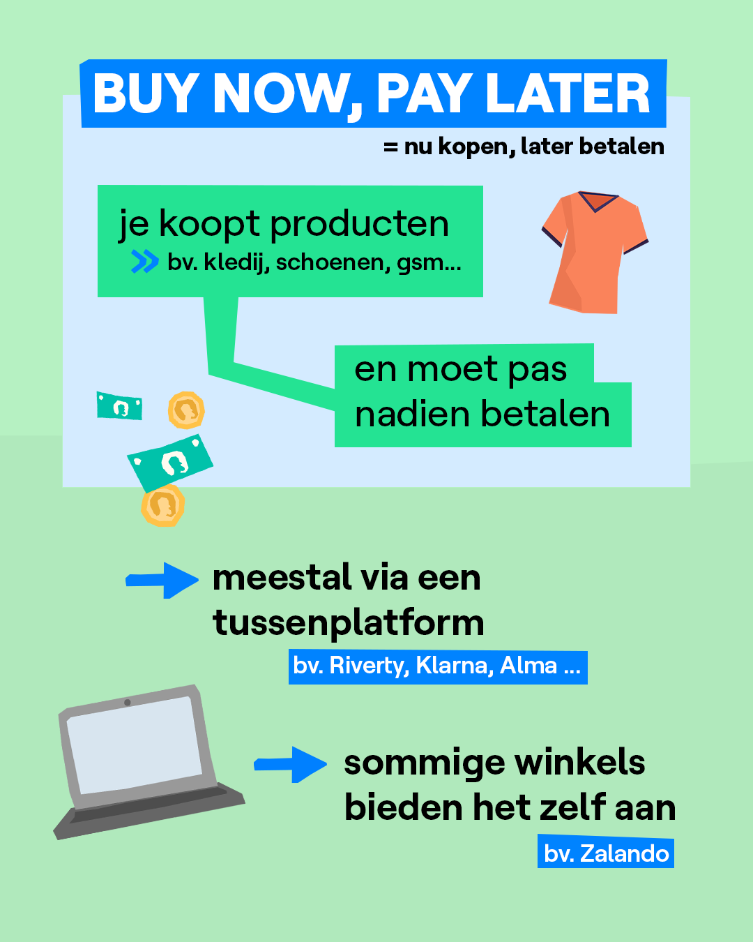 De Federale Overheidsdienst Economie heeft een nieuwe campagne gestart om jongeren te waarschuwen voor 'buy now, pay later'-formules. Zo leren jongeren de risico's kennen van uitgesteld betalen, hoe aantrekkelijk het ook mag klinken. De overheidsdienst deelt ook een aantal tips op hun site om schulden te vermijden.