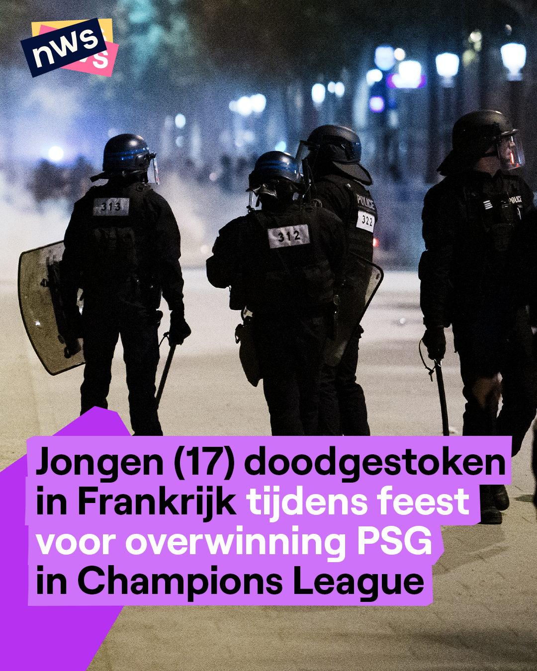 In de Franse stad Dax is gisterenavond een jongen van 17 jaar doodgestoken. Dat gebeurde tijdens een feest om de overwinning van PSG in de Champions League te vieren. Het incident gebeurde vlak nadat de Champions League-finale gedaan was. De jongen werd nog naar het ziekenhuis gebracht maar is daar overleden aan zijn verwondingen. De dader is nog op de vlucht. Ook op andere plaatsen in Frankrijk was het gisterenavond onrustig. In Parijs werden auto's in brand gestoken en winkels geplunderd. Ook etalages en bushaltes zijn vernield. Er zijn in Parijs bijna 300 mensen opgepakt.
