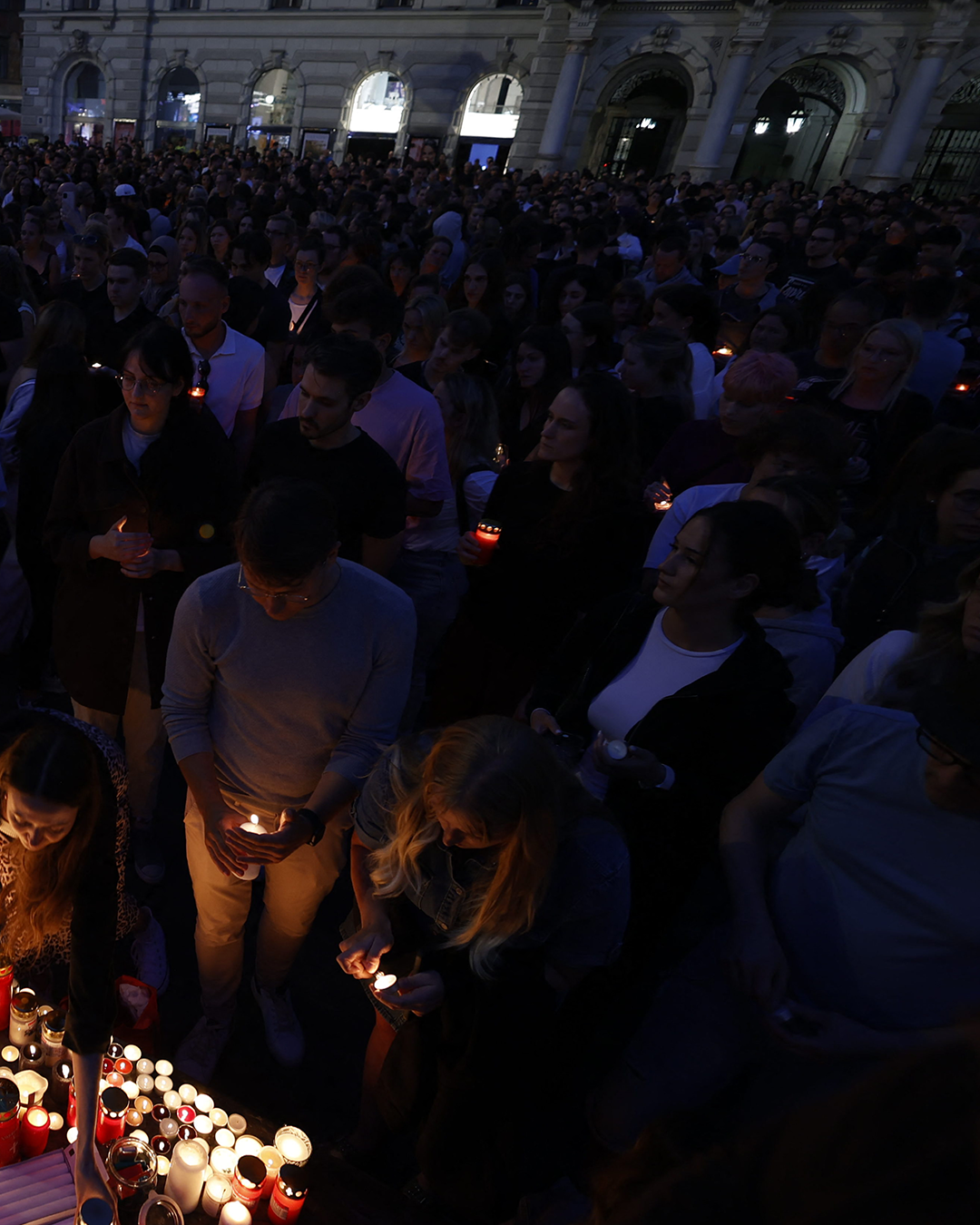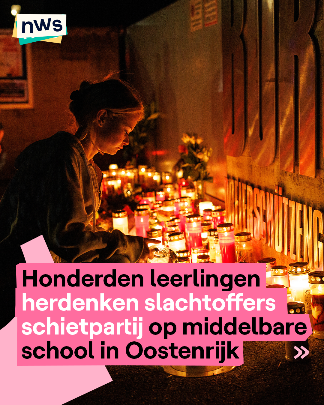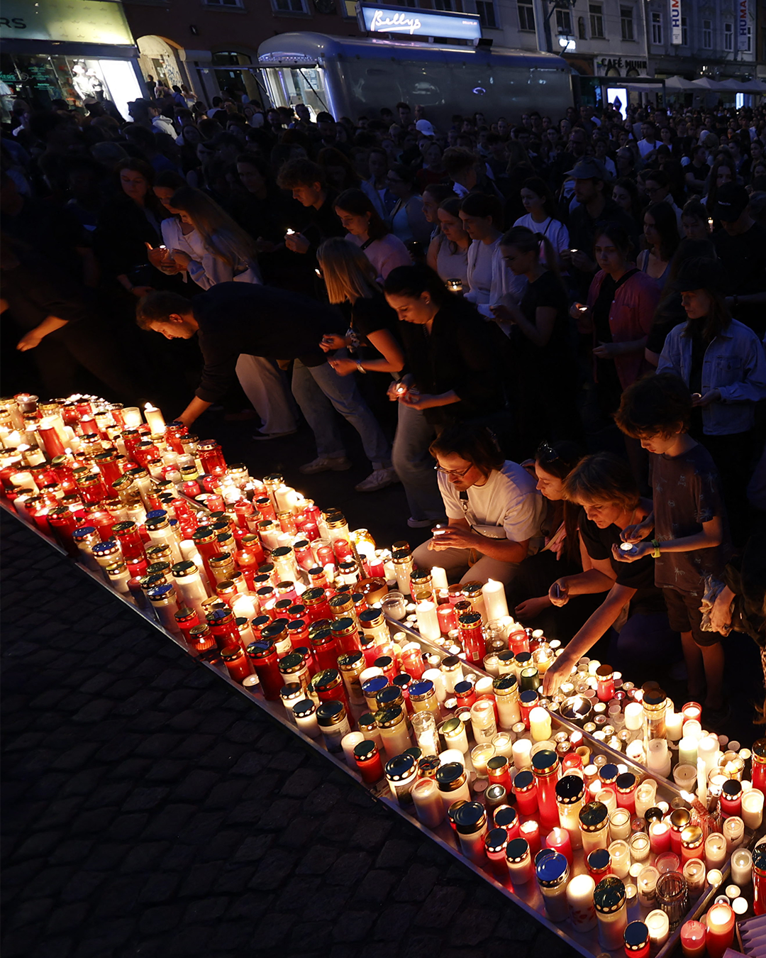 In Graz (Oostenrijk) kwamen gisterenavond honderden mensen samen om de schietpartij op de middelbare school te herdenken. Ze brandden kaarsen op verschillende plekken in de stad. Bij de schietpartij kwamen gisteren 11 mensen om het leven, onder wie de dader. De dader is een oud-leerling (21) van de school. Hij liet een afscheidsbrief na en stapte daarna zelf uit het leven. In die brief geeft hij geen uitleg waarom hij dat gedaan heeft. De dader had twee wapens bij zich, waarvoor hij een wapenvergunning had. Straks wordt in Oostenrijk een minuut stilte gehouden voor de slachtoffers. Er zijn ook drie dagen van nationale rouw afgekondigd.