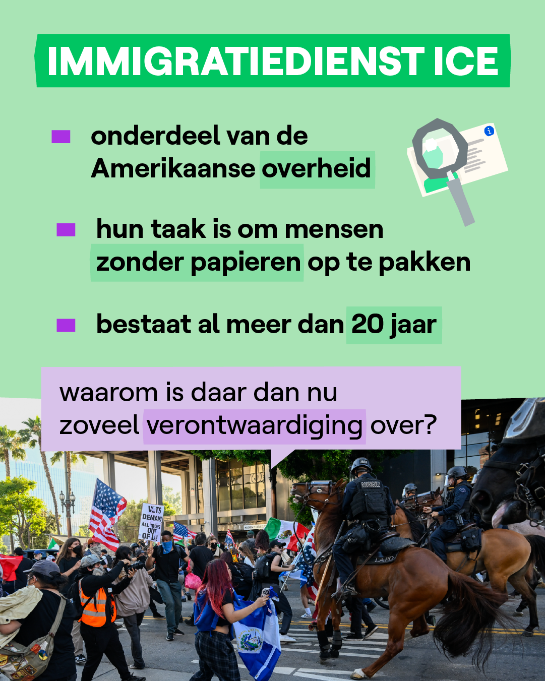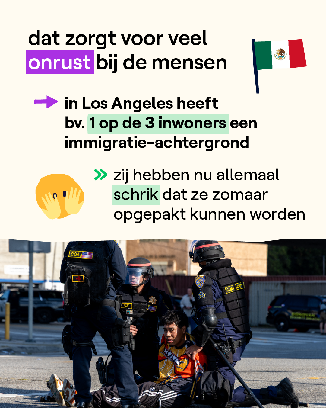 De voorbije week was het heel onrustig in verschillende steden in de VS. Vooral in Los Angeles. Daar protesteren mensen al 6 dagen op rij tegen de arrestaties van ICE. Ook vinden ze de reactie van Trump overdreven. Hij stuurde 4000 soldaten van de Nationale Garde en 700 mariniers naar LA om de protesten te stoppen. Terwijl het grootste deel van de betogingen rustig verloopt. Enkel ‘s nachts breken soms rellen uit. De gouverneur van Los Angeles heeft daarom nu avondklok ingesteld.