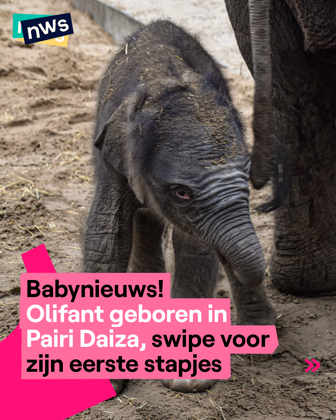 Babynieuws! Olifant geboren in Pairi Daiza, swipe voor zijn eerste stapjes