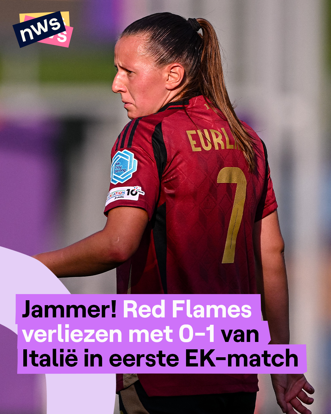 Moeilijke start van het EK voetbal voor de Red Flames. Ze speelden een sterke eerste helft, maar net voor de rust scoorde Italië de 0-1. Daarna werd het een frustrerende match voor de Belgen. De Flames geraakten moeilijk aan de bal en verloren veel tijd door Italiaanse “blessures”. Na dit verlies staat het Belgische elftal voorlopig dus op nul punten. Zondag wordt spannend: dan spelen ze tegen Spanje. Die match moeten ze winnen als ze nog kans willen maken op de kwartfinales.