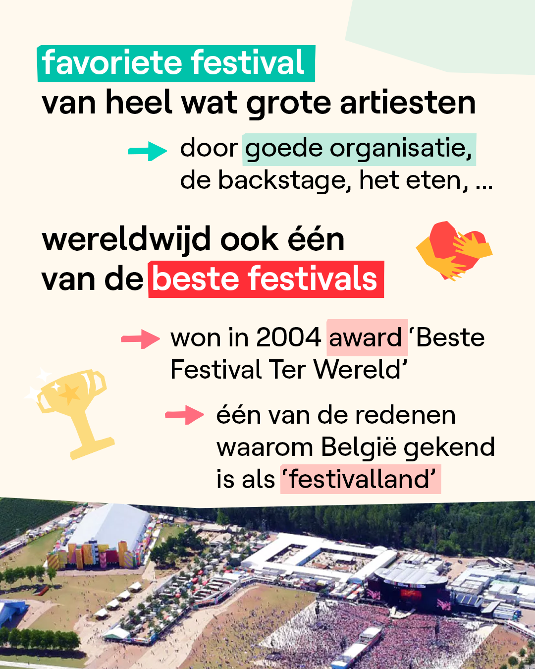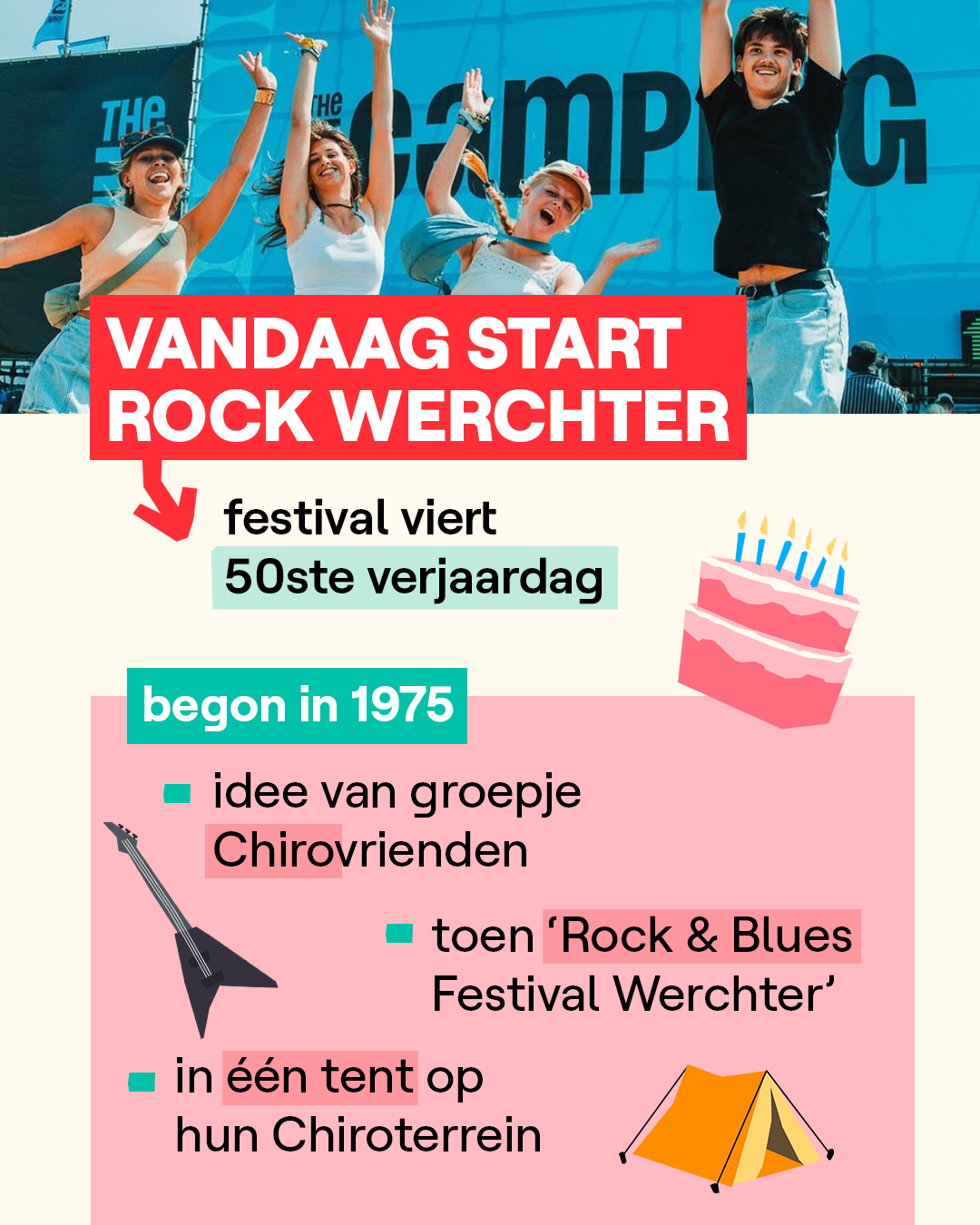 Ga je naar Rock Werchter? Bouw dan maar een zot verjaardagsfeestje, want het festival blaast 50 kaarsjes uit! Dat kan bijvoorbeeld in 'The Barn': een festivaltent zo groot als het Sportpaleis en de grootste in België. Swipe voor nog meer Rock Werchter-weetjes.