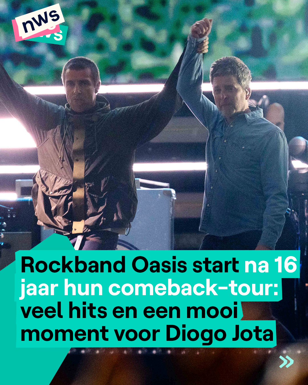 Oasis-fans van over de hele wereld zakten gisteren af naar Cardiff in Wales voor de historische comeback van de rockband. De broers Liam en Noel Gallagher startten daar gisterenavond hun comeback-tour. 16 jaar geleden ging de band uit elkaar omdat de broers niet meer overeen kwamen. Totdat ze vorige zomer deze reünie-tour aankondigden. Meer dan 10 miljoen fans uit 158 landen hoopten toen aan een ticket te geraken. En niet voor niets want gisterenavond was een groot succes. Ze brachten al hun grote hits, die de 70.000 aanwezige fans luid meezongen. Tijdens het concert was er ook ruimte voor een mooi gebaar. De band bracht hun lied 'Live Forever' ter ere van de net overleden Liverpool-voetballer Diogo Jota.