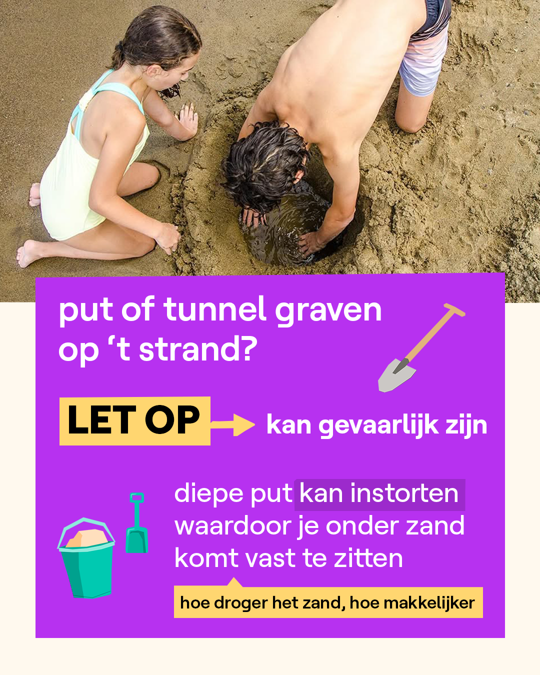 In Italië is een jongen van 17 jaar gestorven op het strand. Hij was met zijn gezin uit Rome op vakantie in Montalto di Castro, een badplaats ten noorden van Rome. Samen met zijn 2 broers hadden ze een diepe put van 1,5 meter gegraven op het stand. Toen de broers even weg waren, kroop de 17-jarige jongen in de put. Toen ging het mis en stortte de put in. Het duurde 40 minuten om de jongen uit het zand te krijgen maar alle hulp kwam te laat. Redders waarschuwen al lang voor de risico’s van te diepe putten.