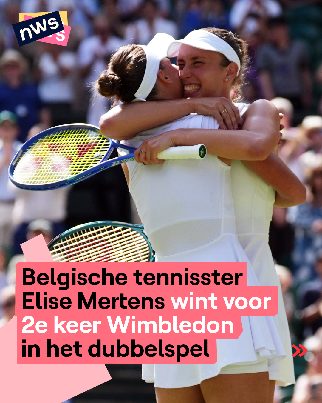 De Belgische Elise Mertens (29) heeft de finale van het dubbelspel op Wimbledon gewonnen. Da’s een grandslamtoernooi, een van de belangrijkste tenniswedstrijden ter wereld. Bij een dubbelspel, zoals de naam het al zegt, speel je twee tegen twee. Elise Mertens speelde de superspannende finale samen met de Russische Veronika Koedermetova. 't Is al de tweede keer dat Elise deze finale op Wimbledon wint. Ook in 2021 won ze de hoofdprijs in het dubbelspel.