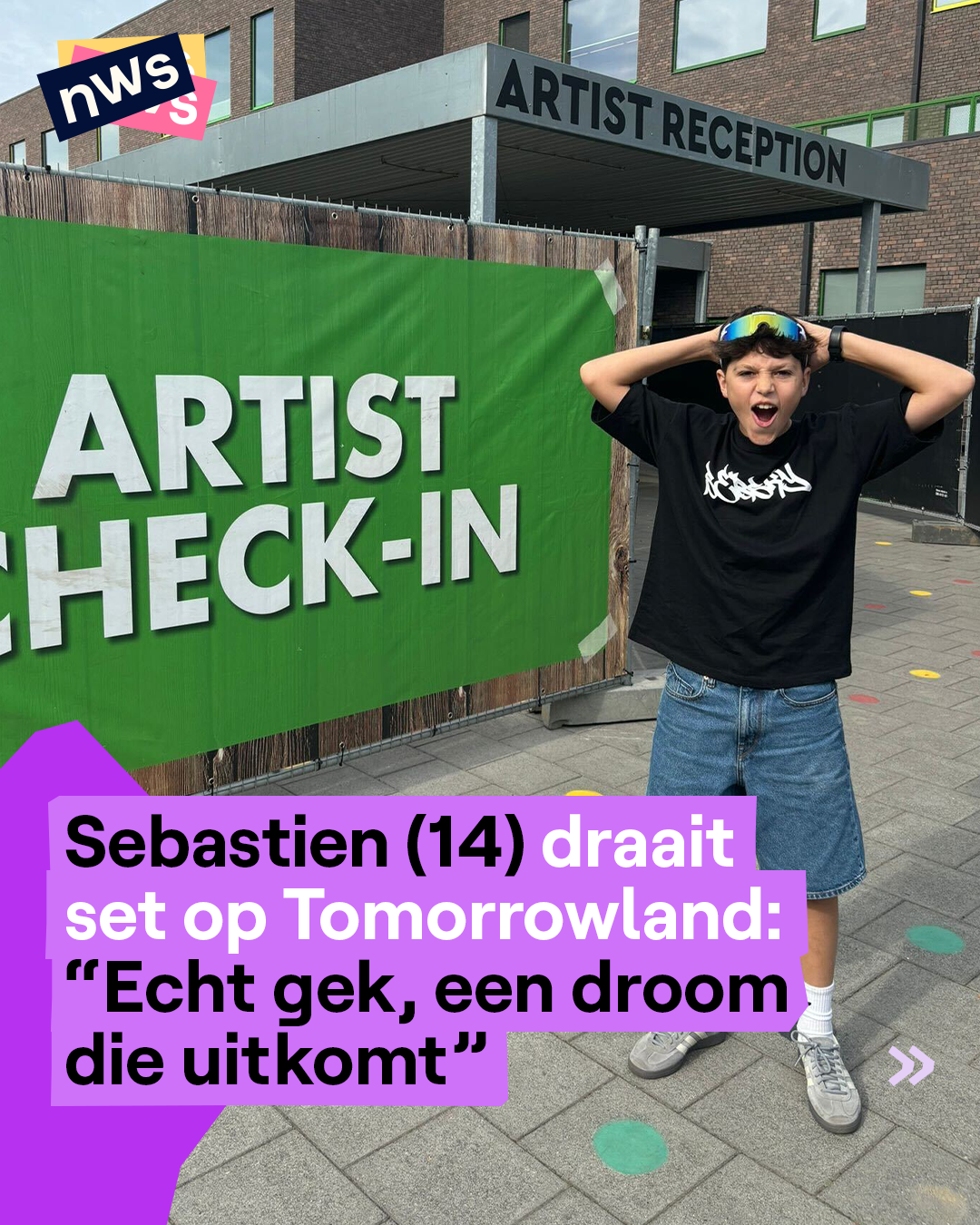 Nice! Sebastiaan of 'dj Sebsky' uit Dilbeek (Vlaams-Brabant) mocht vandaag een van zijn grootste dromen waarmaken: een set draaien op het wereldberoemde festival Tomorrowland. Sebastiaan volgde al verschillende zomerkampen van de Tomorrowland Academy. Dat is de dj- en producerschool van het festival voor kinderen, jongeren én volwassenen. Tijdens hun workshops krijg je tips en tricks van topartiesten. Sebastiaan werd uiteindelijk geselecteerd om op het echte festival te draaien. Da's zot, want om zelf naar Tomorrowland te gaan moet je eigenlijk 18 jaar zijn. Het giga-festival in Boom (Antwerpen) is gisteren gestart en verwacht in totaal zo'n 400.000 bezoekers. Ook volgende week staat er een weekend gepland. Swipe!