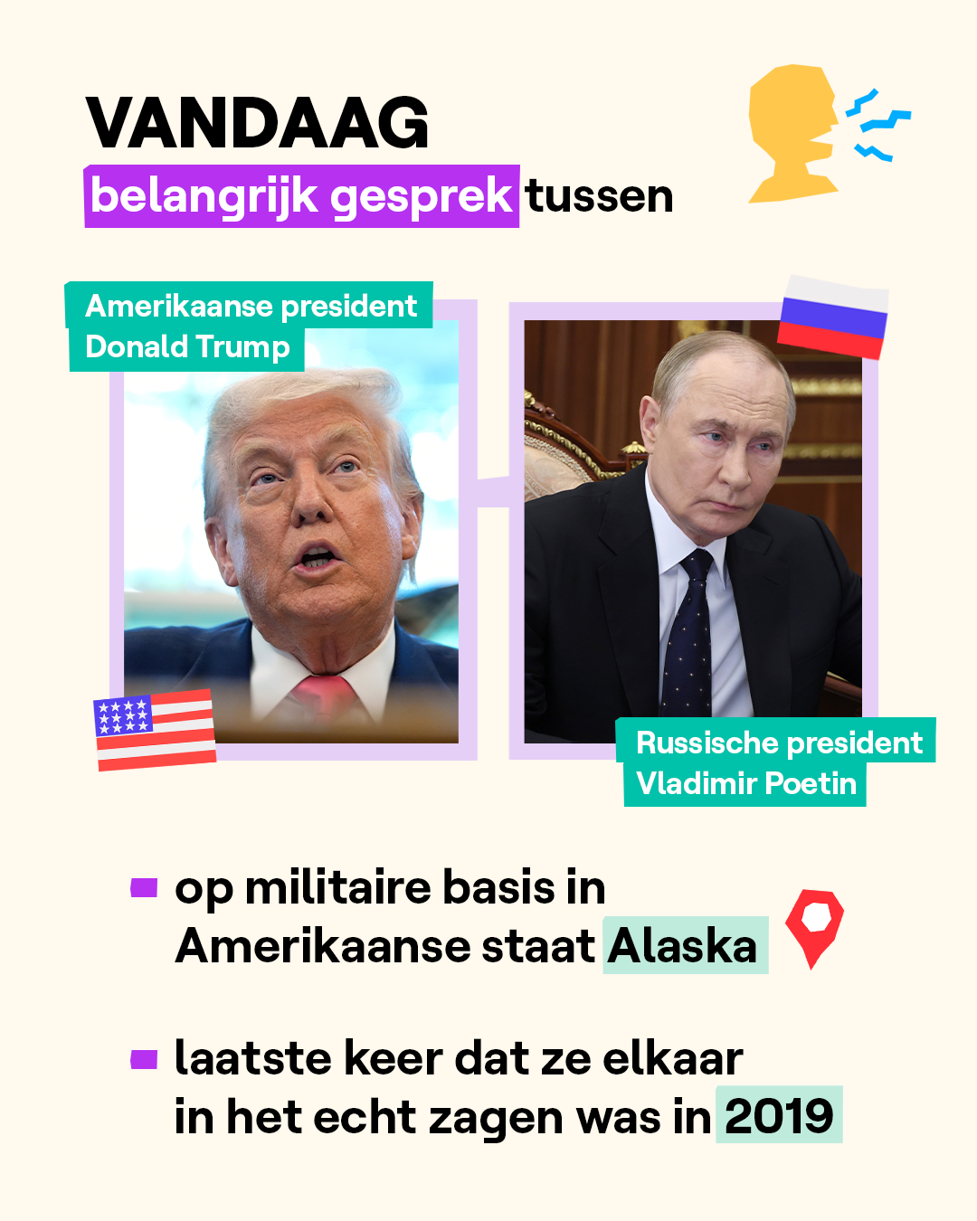 Trump en Poetin komen straks in Alaska samen om 11 uur lokale tijd, dan is het 21 uur in België. Gisteren was er nog een videogesprek tussen Donald Trump,Volodymyr Zelensky en de Europese Unie. Volgens Trump was het "een zeer goed gesprek". De Europese leiders hopen dat de ontmoeting tussen Trump en Poetin kan leiden tot een staakt-het-vuren in Oekraïne.
