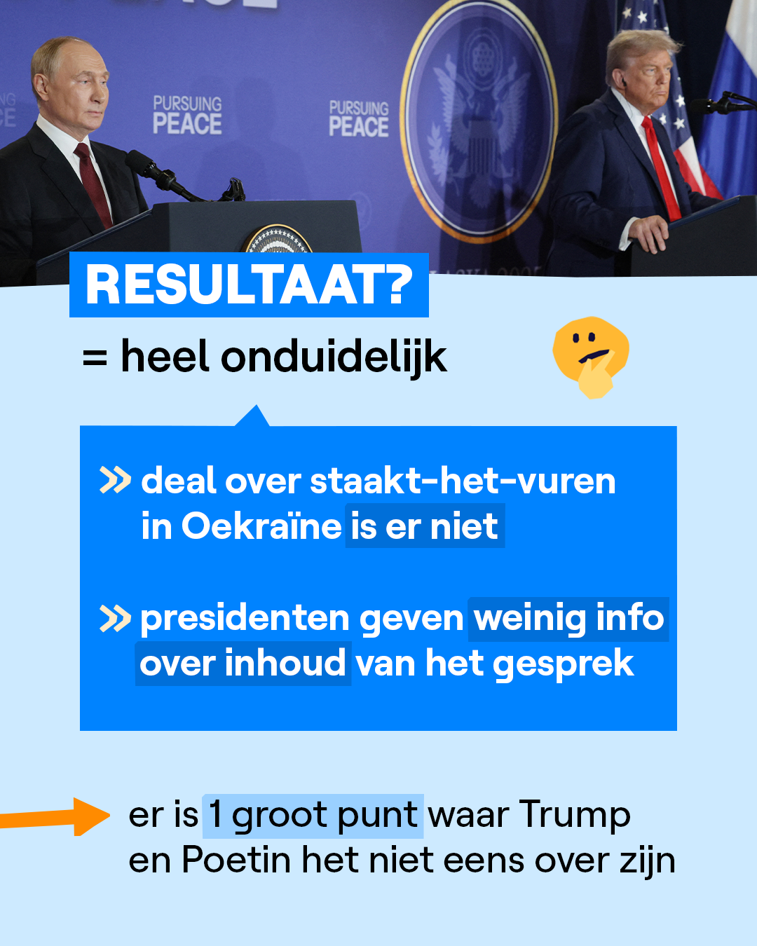 Na gesprek van bijna 3 uur tussen Trump en Poetin: geen deal over staakt-het-vuren in Oekraïne