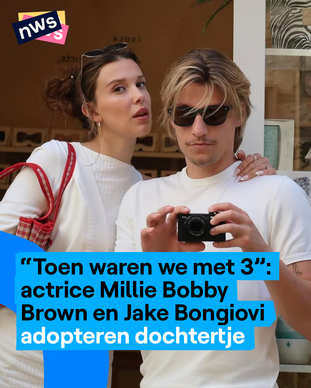 Deze zomer adopteerden actrice Millie Bobby Brown (21) en haar partner Jake Bongiovi (23) hun eerste kindje. Dat maakten ze bekend via hun sociale media. Millie is vooral bekend als 'Eleven' uit de Netflix-serie 'Stranger things'. Jake en Billie zijn sinds 2021 een koppel en trouwden vorig jaar. De naam van hun dochtertje houden ze voorlopig nog geheim.