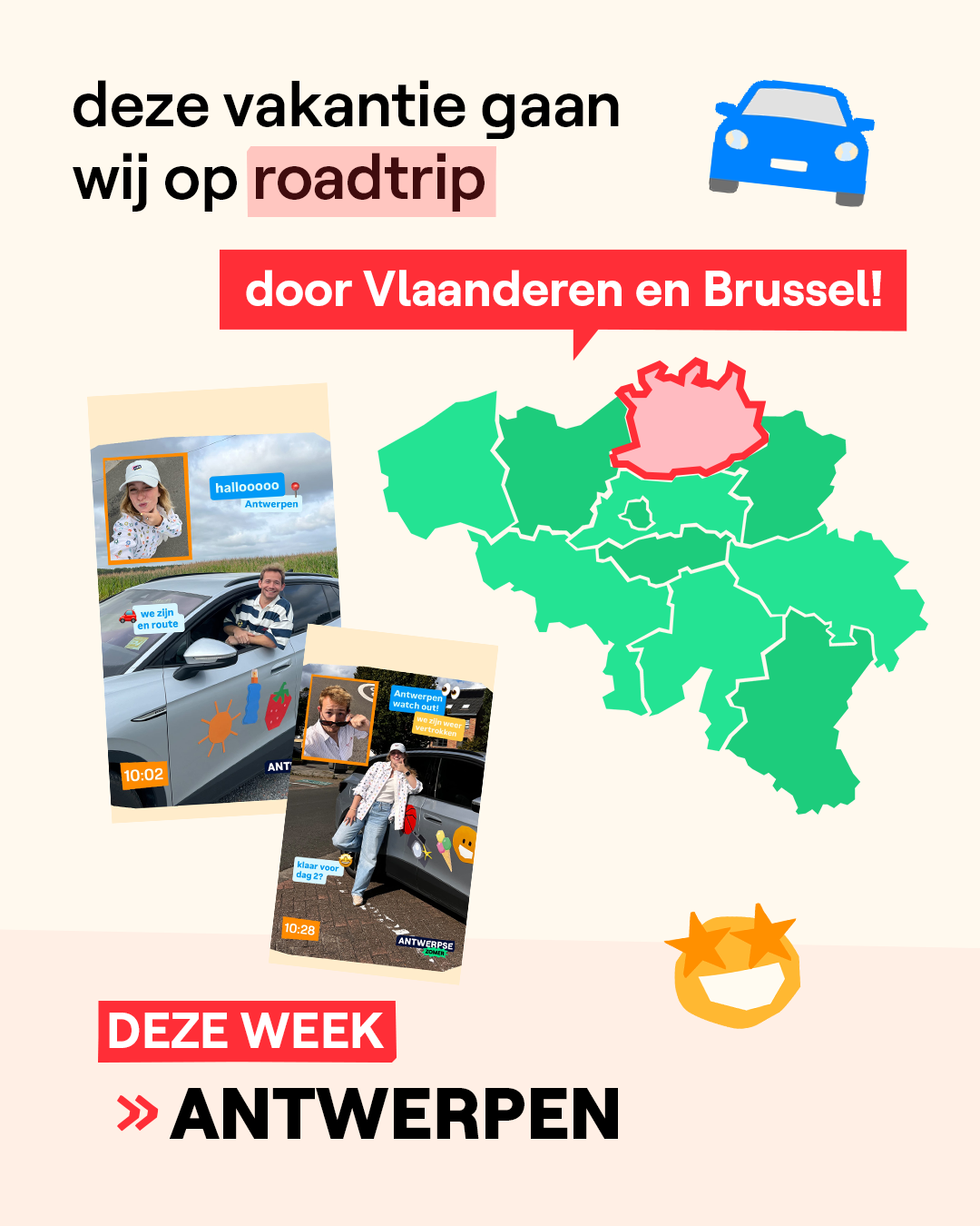 Deze zomervakantie komen wij naar jullie toe! Deze week ging onze roadtrip door de provincie Antwerpen. We gingen onder meer langs bij Tjeu die een zweeflviegkamp volgt bij de luchtkadetten en we gingen een ijsje eten in de eigen ijs- en koffiebar van Estelle (17). Volgende week: Limburg! Doe jij iets leuk in die provincie? Drop het in de comments of stuur ons een DM!