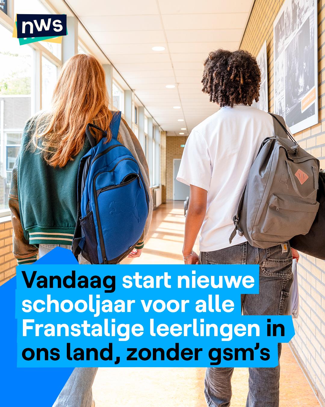 Voor 900.000 leerlingen uit de lagere en middelbare school in ons land is het vandaag de eerste schooldag. Dat komt omdat ze naar Franstalige scholen gaan in Wallonië en Brussel. In het Franstalig onderwijs is de zomervakantie korter, maar de herfst- en krokusvakantie duren dan weer een weekje langer. Dit jaar is er in het Franstalig onderwijs een volledig smartphoneverbod, van het kleuter tot en met het zesde middelbaar. In Vlaamse scholen mogen leerlingen uit de derde graad dit schooljaar hun gsm wel nog gebruiken, als de school dat toelaat.