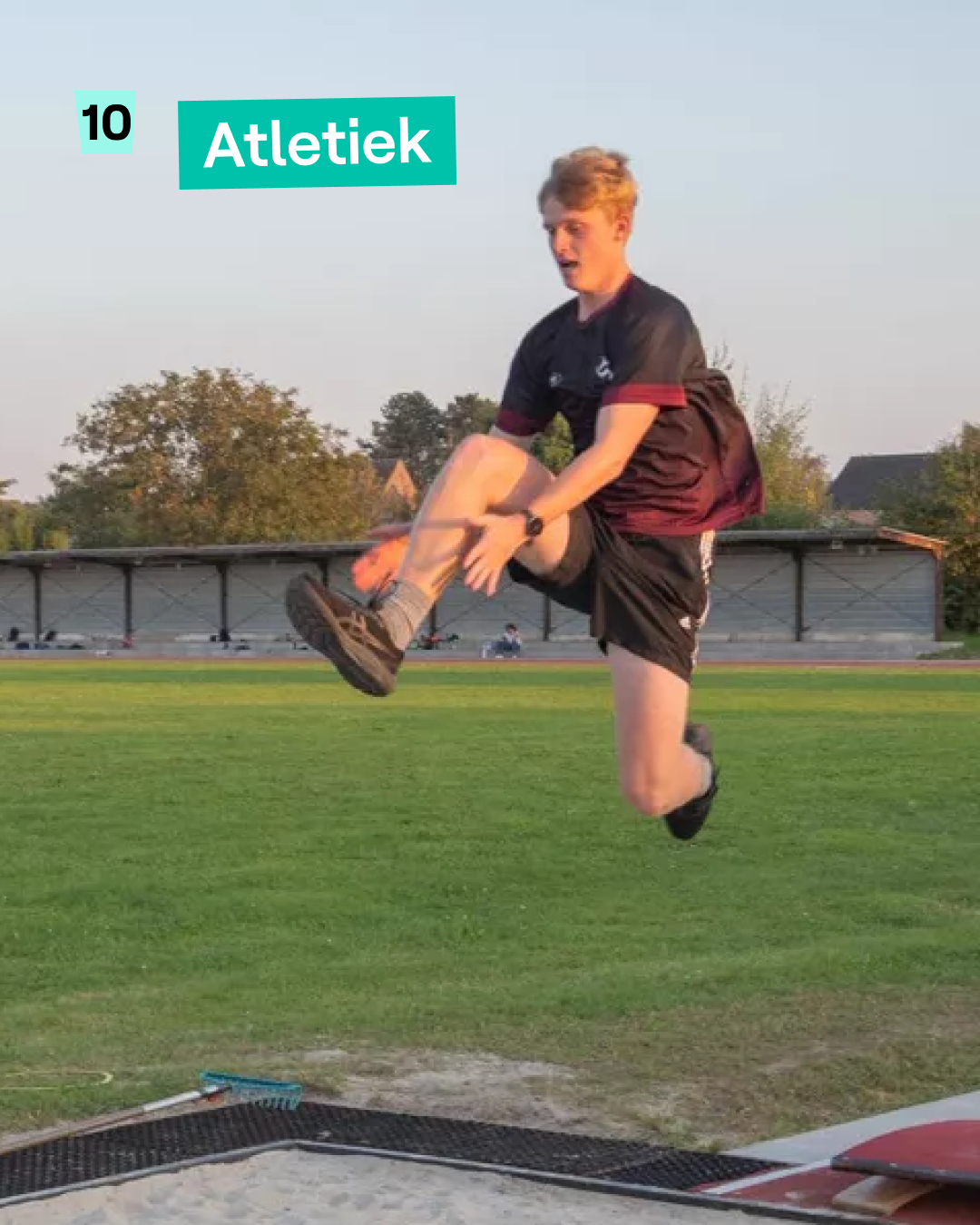 2024 was een recordjaar. Nog nooit waren zoveel Vlamingen aangesloten bij een sportclub. In de top 10 van populairste sporten in Vlaanderen staat voetbal met een grote voorsprong op nummer 1. Dat blijkt uit cijfers van Sport Vlaanderen. In totaal voetballen er 89.805 Vlaamse tieners. Jouw favoriete sport nog niet gevonden? Dan is nu het moment om te zoeken. Want september is de Maand van de Sportclub en dan zetten heel wat clubs hun deuren open voor proeflessen. Swipe voor de top 10!