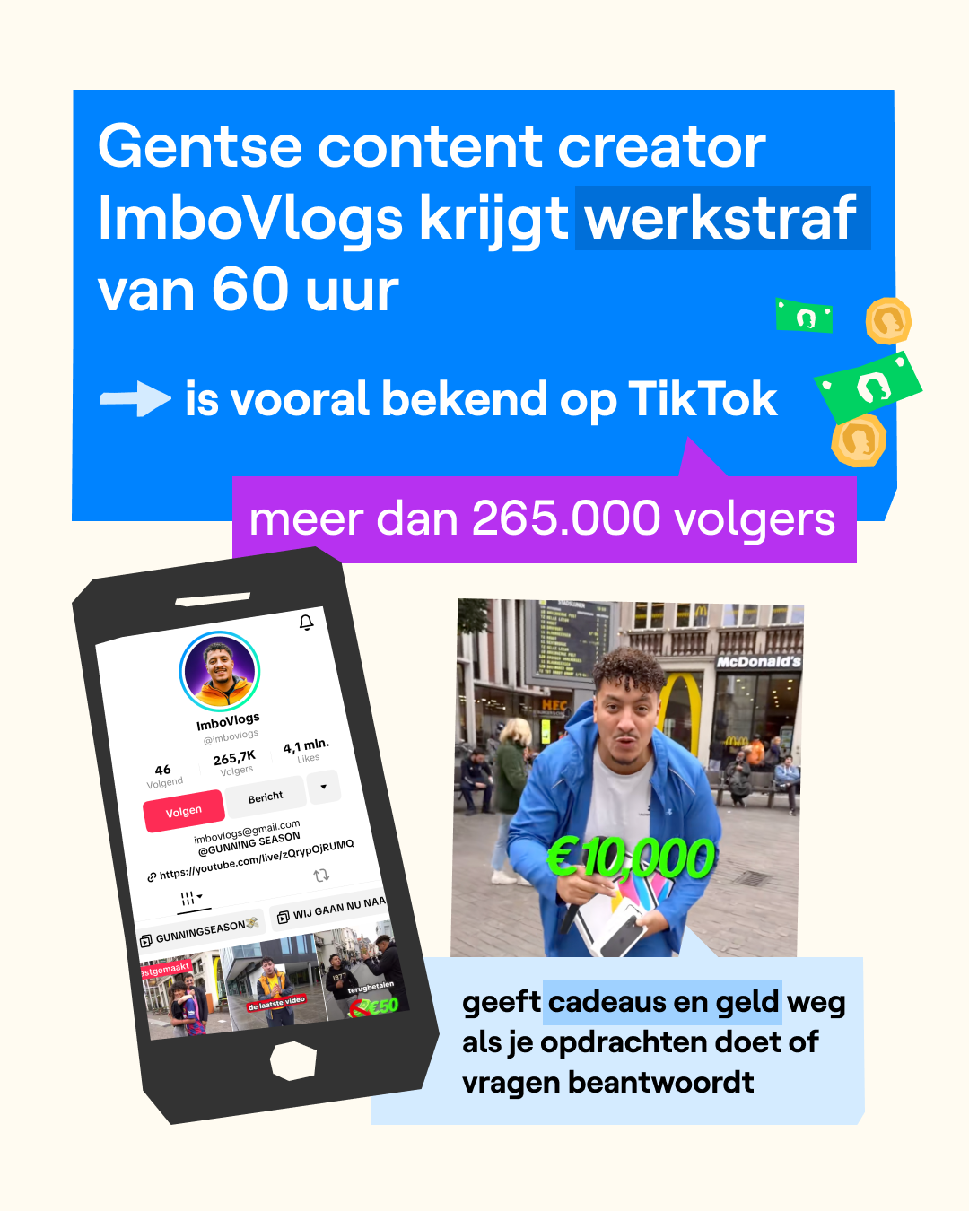 ImboVlogs moet ook een schadevergoeding betalen aan het slachtoffer. Daarnaast wordt hij nu gecoacht door een managementbureau zodat alles in de toekomst correct verloopt.