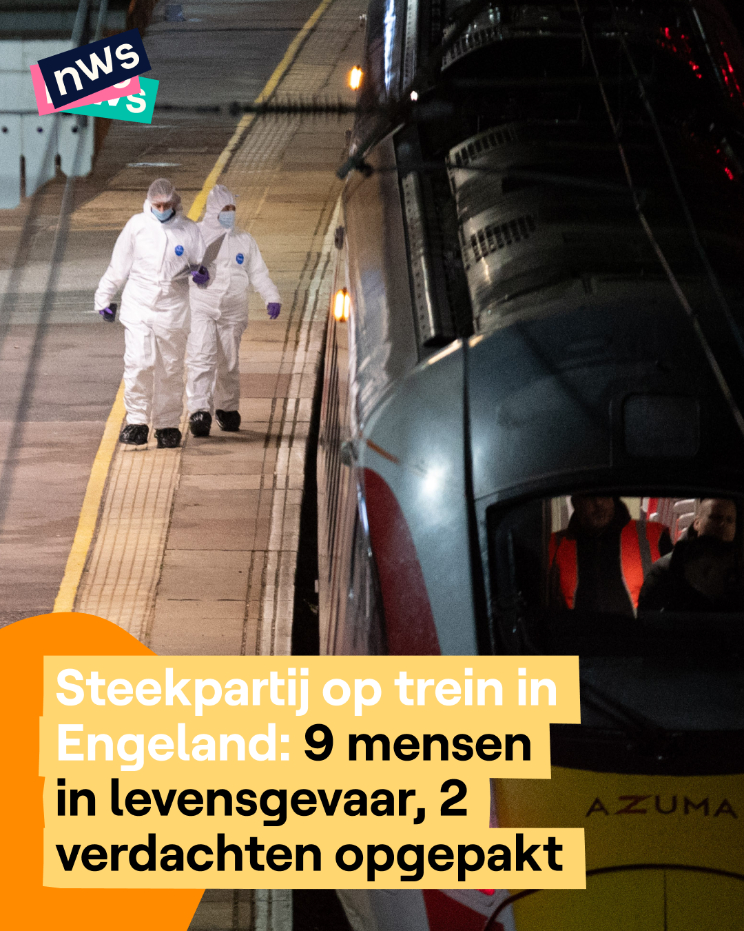 In het Verenigd Koninkrijk zijn gisterenavond 10 mensen neergestoken op een trein die onderweg was naar Londen. 10 mensen zijn gewond geraakt en naar het ziekenhuis gebracht, waarvan 9 mensen levensgevaarlijke verwondingen opliepen. Na een noodstop werden twee verdachten opgepakt. Waarom de twee mannen dit gedaan hebben, is nog niet duidelijk.