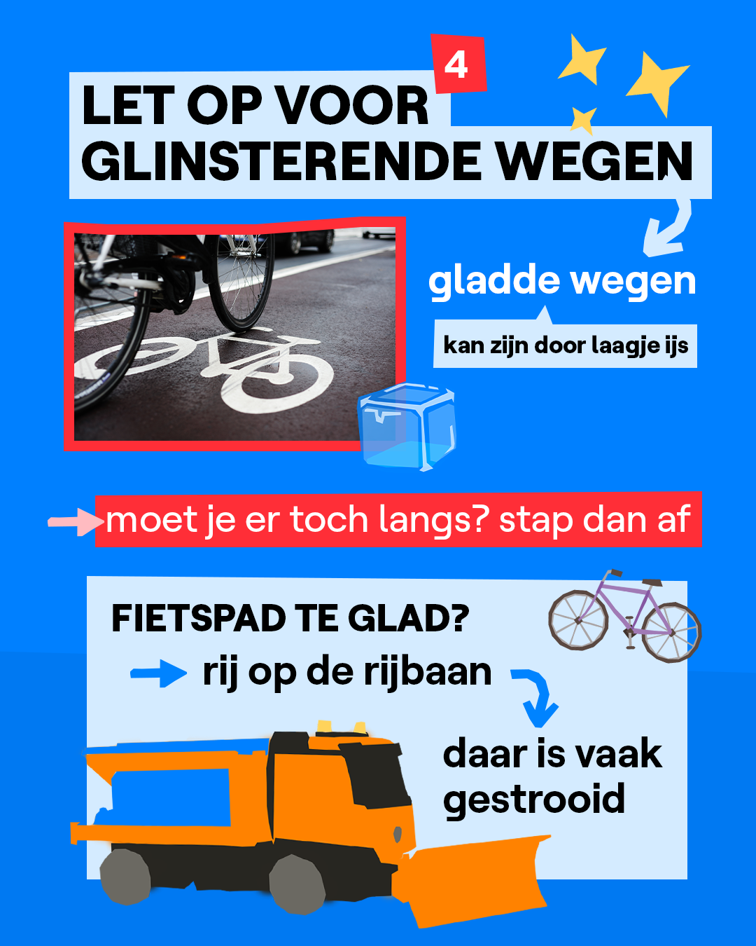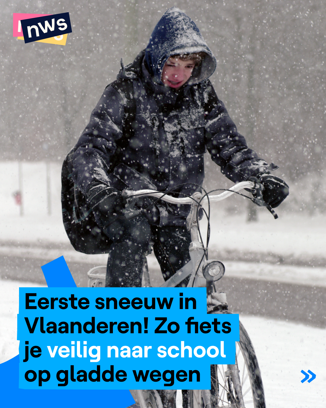 Ga je met de fiets naar school? Haal je dikke jas, fietshelm en handschoenen maar boven. Vanavond en vannacht is er nog kans op sneeuw of smeltende sneeuw. Het KMI waarschuwt vanaf vanavond 18 uur tot morgenmiddag voor gladde wegen. Ook morgenochtend moet je dus goed opletten. In het weekend gaat het 's nacht stevig vriezen tot wel -5 graden. Daardoor gaat de mist waarschijnlijk aanvriezen. Let dus extra goed als je de baan op gaat.