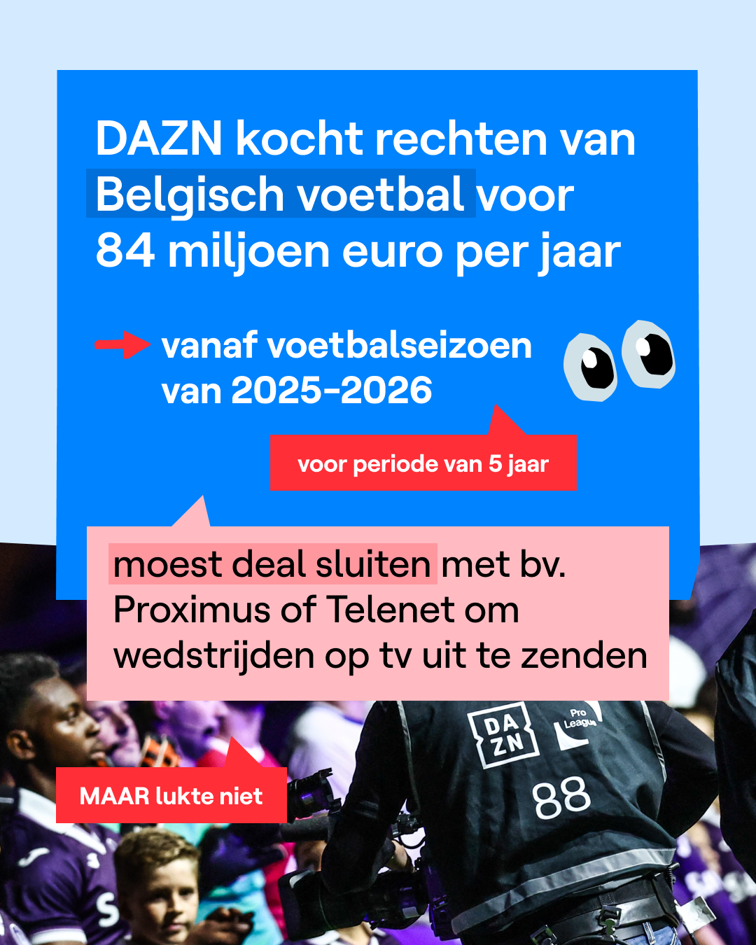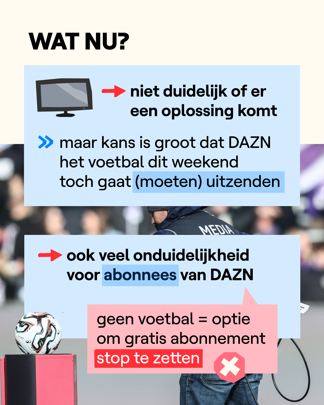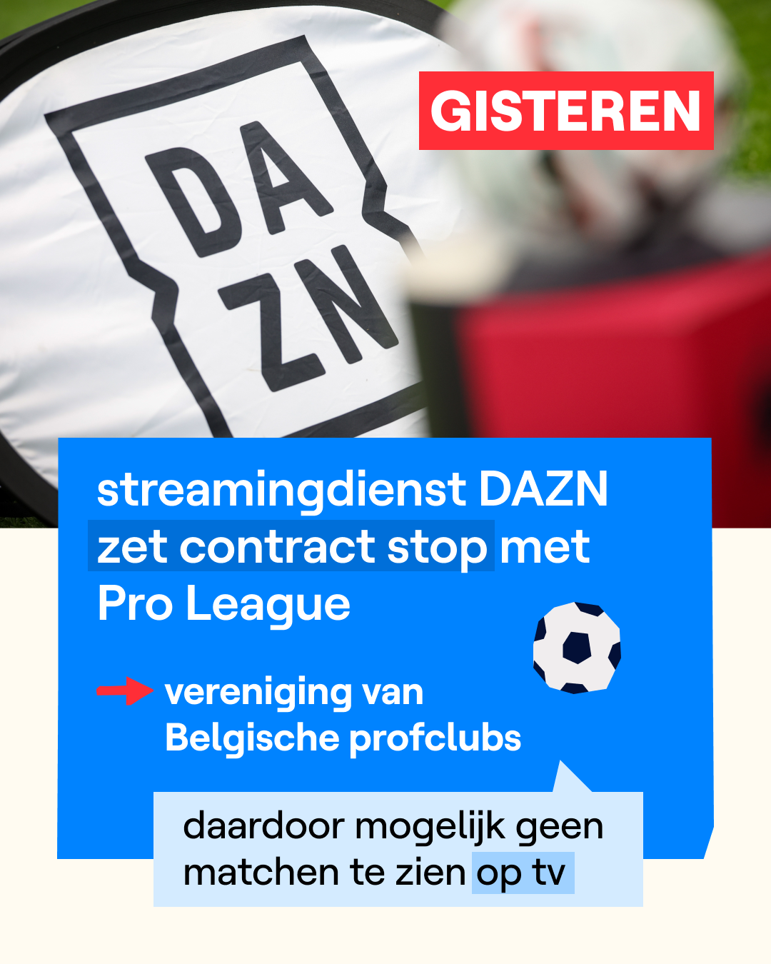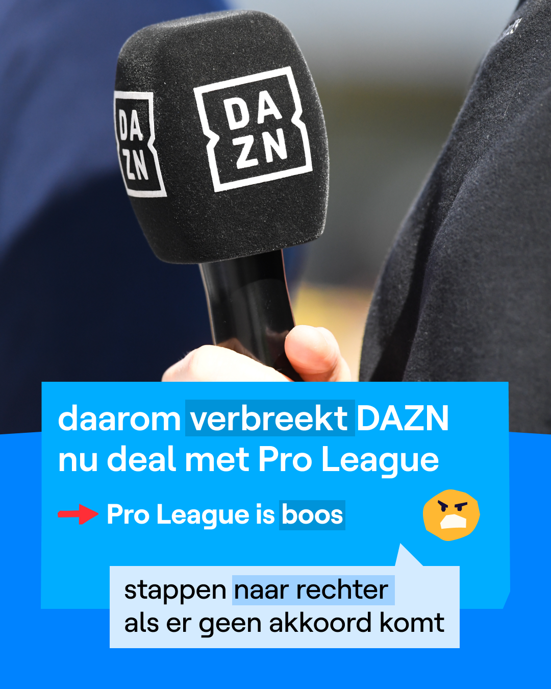 Gisteren maakte de Pro League, de organisatie van profclubs, al bekend dat ze naar de rechtbank stappen als er geen akkoord komt. De rechter kan DAZN dan verplichten om de voetbalwedstrijden uit te zenden tot er een definitieve uitspraak is gedaan.