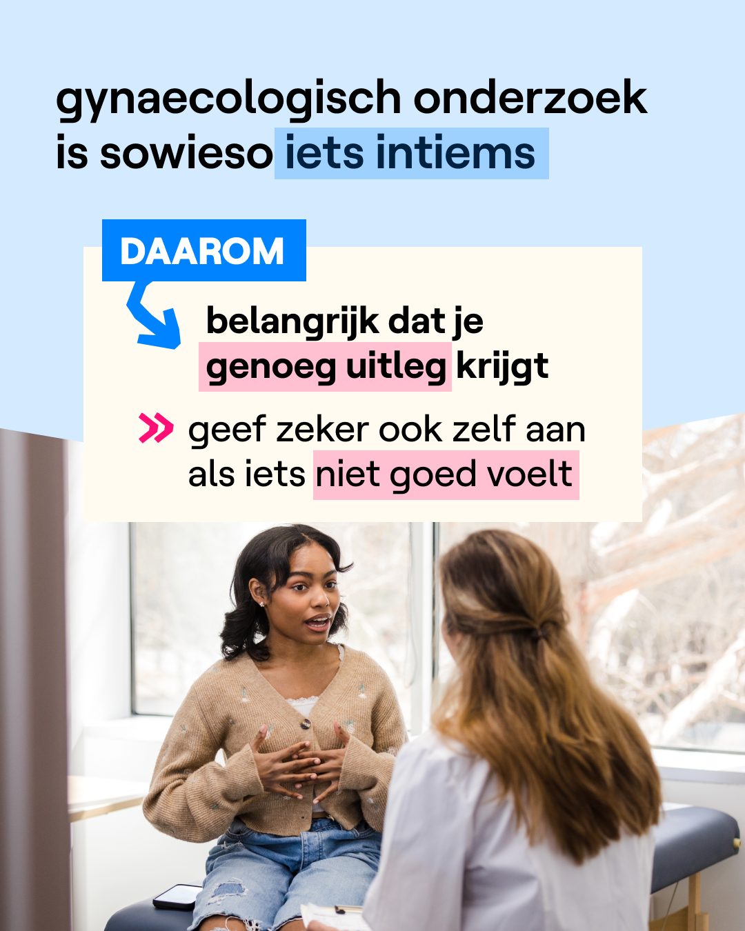 Een gynaecoloog is een arts waarbij je terecht kan als je last hebt van hevige menstruatiepijn, pijn bij seks of als je vragen hebt rond voorbehoedsmiddelen. Volgens de Wereldgezondheidsorganisatie is het belangrijk dat je er eenmaal per jaar een onderzoek uitvoert vanaf dat je seksueel actief bent. Meer info hierover kan je vinden op allesoverseks.be.
