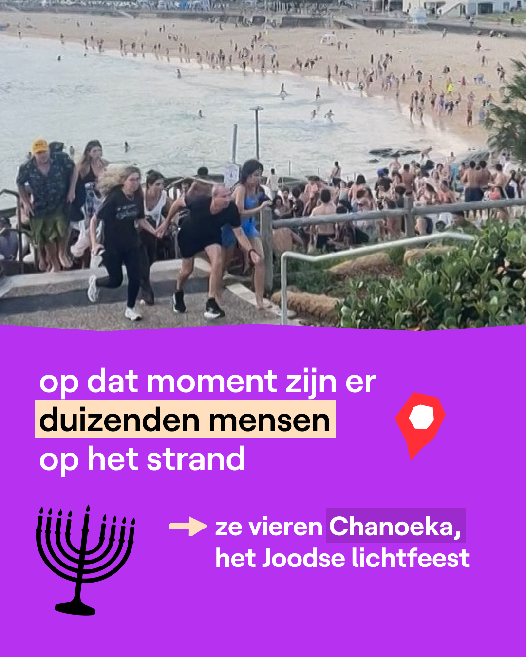 Heftig nieuws uit Australië. Rond 18 uur lokale tijd openden twee mannen het vuur op een strand in Sydney. Duizenden mensen vierden er net op dat moment Chanoeka, het Joodse lichtfeest. Bij de schietpartij vielen al zeker 11 doden. De politie onderzoekt nog wat er precies gebeurd is. De beelden van Ahmed Al Ahmed, de man die één van de schutters overmeesterde, gaan ondertussen viraal.