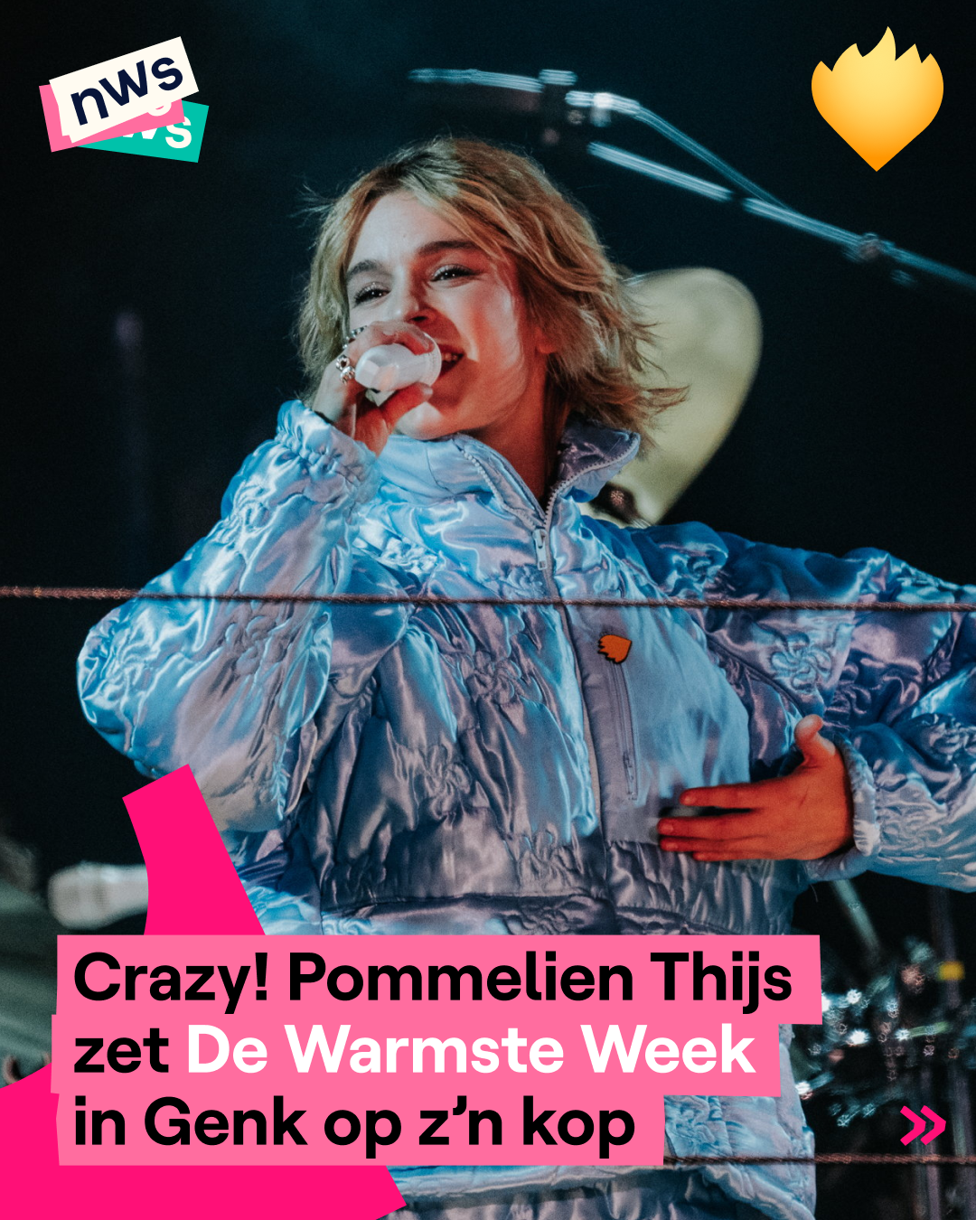 Wat als Pommelien Thijs zingt op De Warmste Week in Genk? Dan moet het terrein - nog vóór de show - afgesloten worden... Het Cosmogolempark ging helemaal los tijdens het optreden van Pommelien. Ze begon haar set met 'Authentiek' en daarna zong ze hits als 'Zilver' en 'Erop of eronder'. De zangeres bracht ook 'Cassandra', een nummer dat ze nog nooit live had gebracht en waar veel fans stiekem op hoopten. Na Pommelien was er nog een zotte show van Omdat Het Kan en Average Rob. Zij waren het laatste optreden van De Warmste Week 2025.