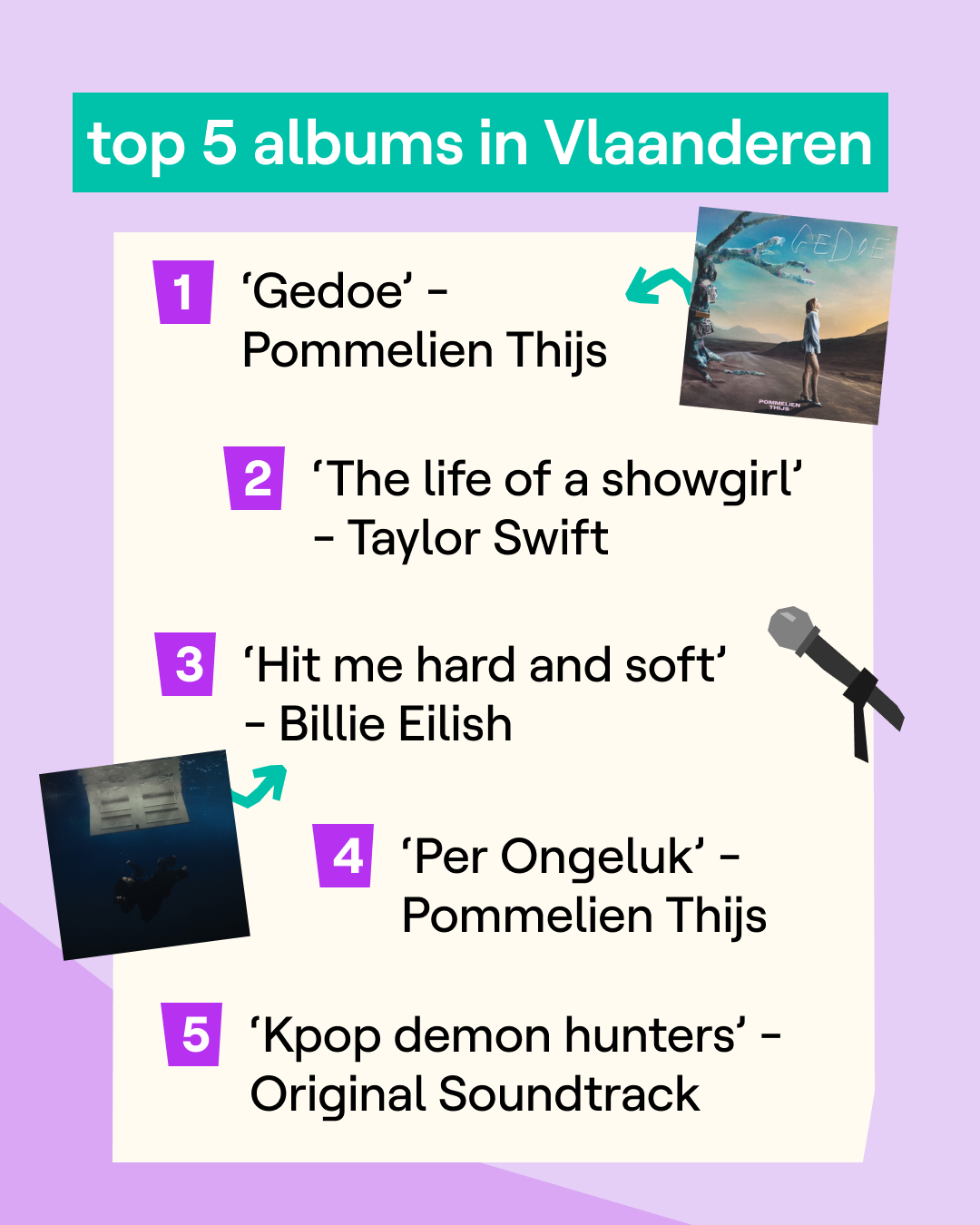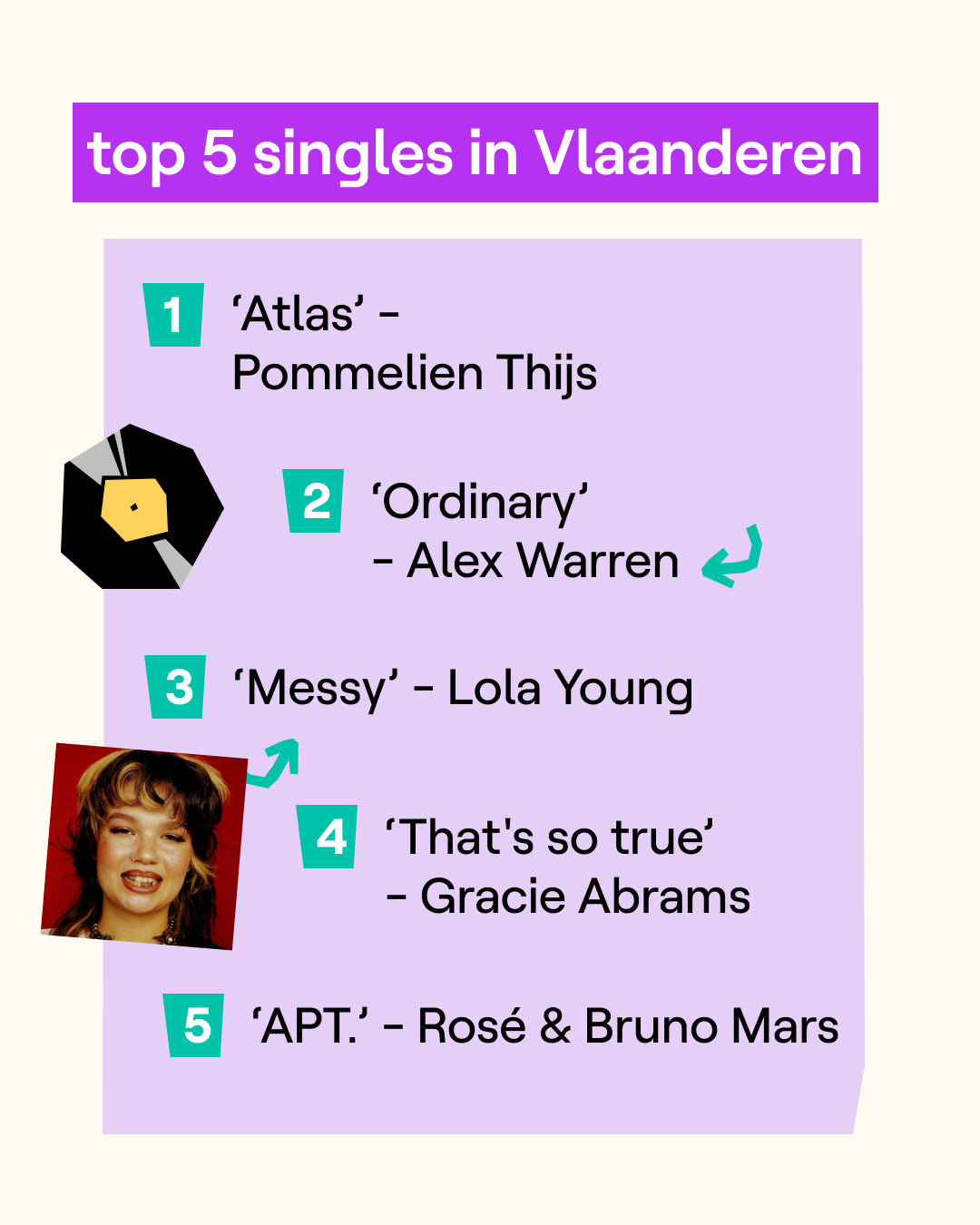 Pommelien Thijs op nummer 1: deze artiesten staan bovenaan de Vlaamse hitlijsten