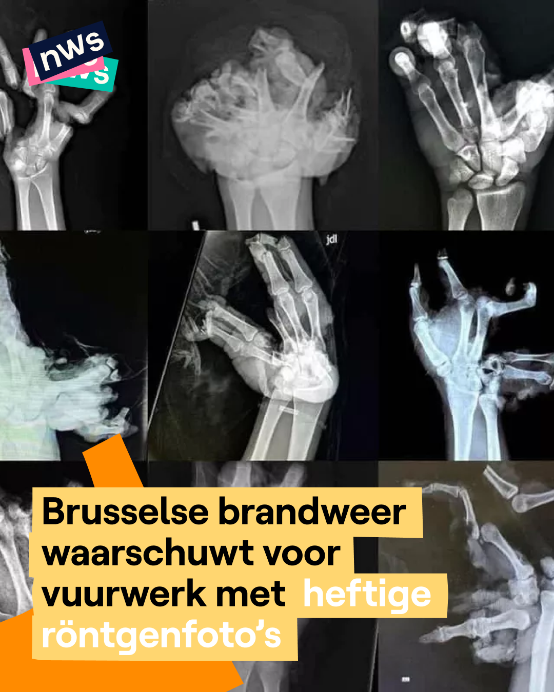 De Brusselse brandweer waarschuwt voor de gevaren van vuurwerk met een opvallend beeld: een röntgenfoto van handen na een ongeval. De brandweer heeft een duidelijke boodschap: “Eén moment van onvoorzichtigheid kan leiden tot zware en blijvende verwondingen. Leef het verbod na!” Elk jaar raken mensen gewond door vuurwerk dat verkeerd gebruikt wordt. Daarom is het in Brussel en veel andere steden verboden om vuurwerk af te steken.