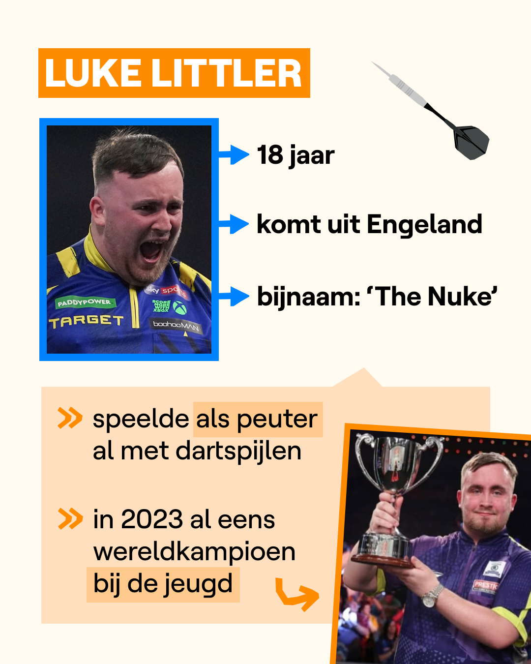 Opnieuw sportgeschiedenis voor Luke Littter. De 18-jarige Brit heeft gisterenavond voor de tweede keer het WK darts gewonnen. Hij versloeg de Nederlander Gian van Veen met 7-1. Van Veen won de eerste set, maar daarna won Littler 7 sets na elkaar. Straffe prestatie van Luke want het is al van 2016 geleden dat iemand twee jaar op rij wereldkampioen kan worden.