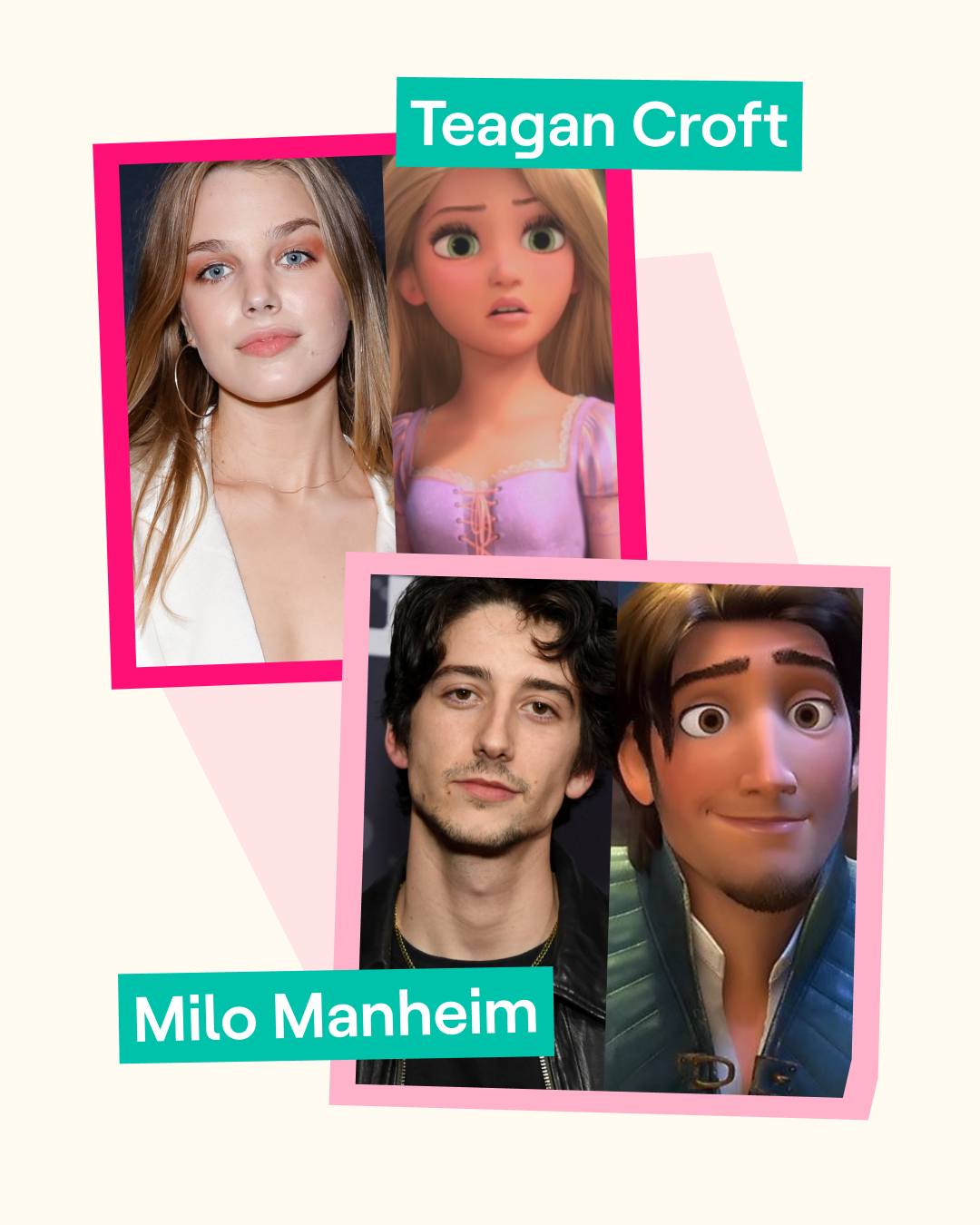 Aha! De hoofdrollen voor de nieuwe live-action 'Tangled' zijn bekend. De Australische actrice Teagan Croft (21) and de Amerikaanse acteur Milo Manheim (24) spelen Rapunzel en Flynn in de nieuwe film van Disney. 'Tangled' is een animatiefilm die in 2010 uitkwam. De film gaat over de prinses Rapunzel. Ze heeft meterslange goudblonde haren en wordt als kind opgesloten in een hoge toren. De dief Flynn helpt de prinses ontsnappen. De opnames van de live-action zouden begin juni starten in het Verenigd Koninkrijk. Wanneer de film dan uitkomt, is nog niet duidelijk.